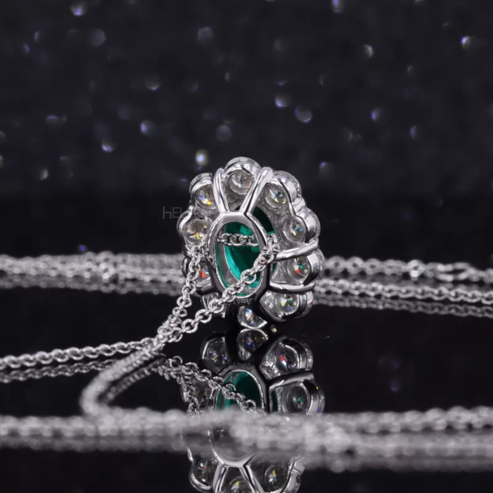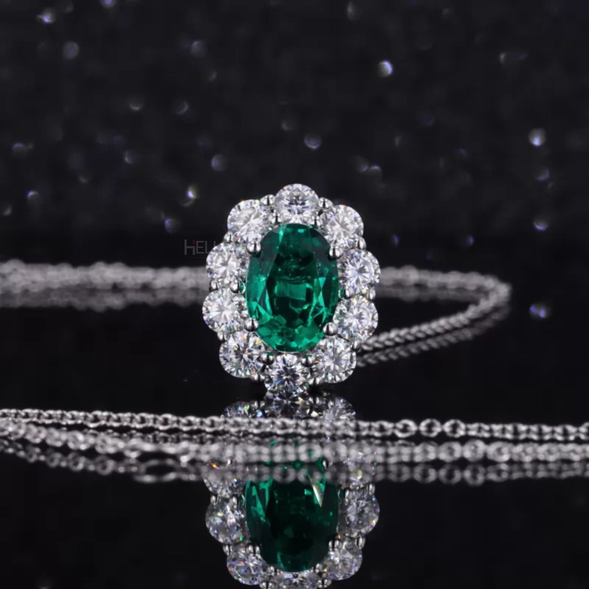 Iconic Oval Emerald Halo Necklace with Round Moissanite