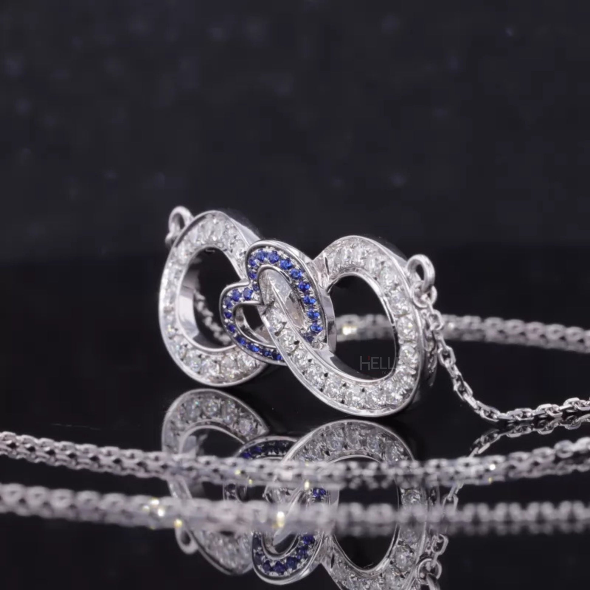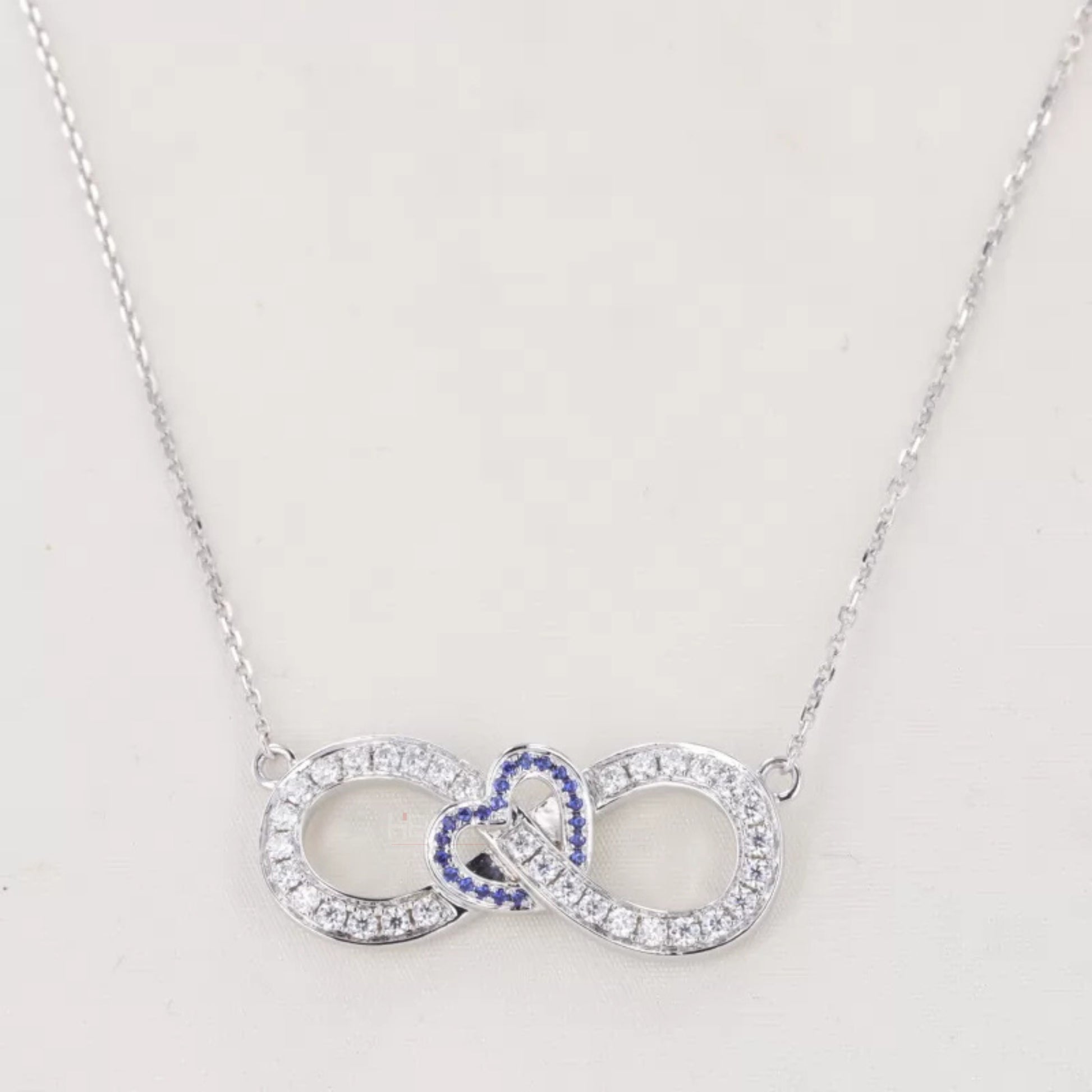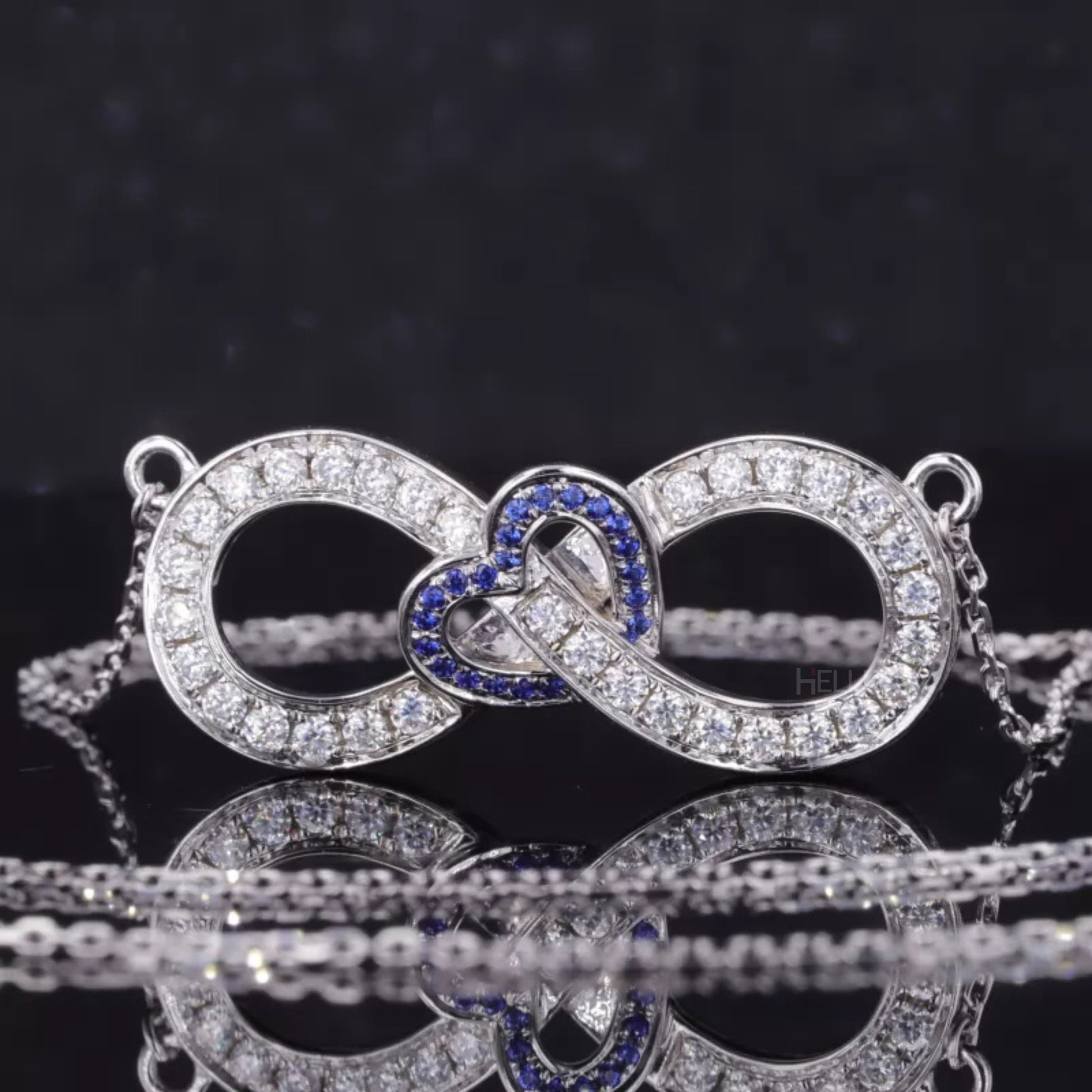 Infinity & Heart Moissanite & Blue Gemstone Necklace for Everyday