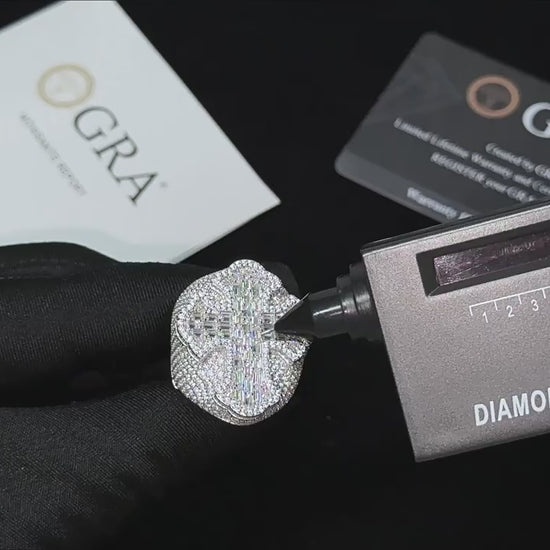 Large Moissanite Opulence Iced Out Cross Ring With Baguette and Round Cut