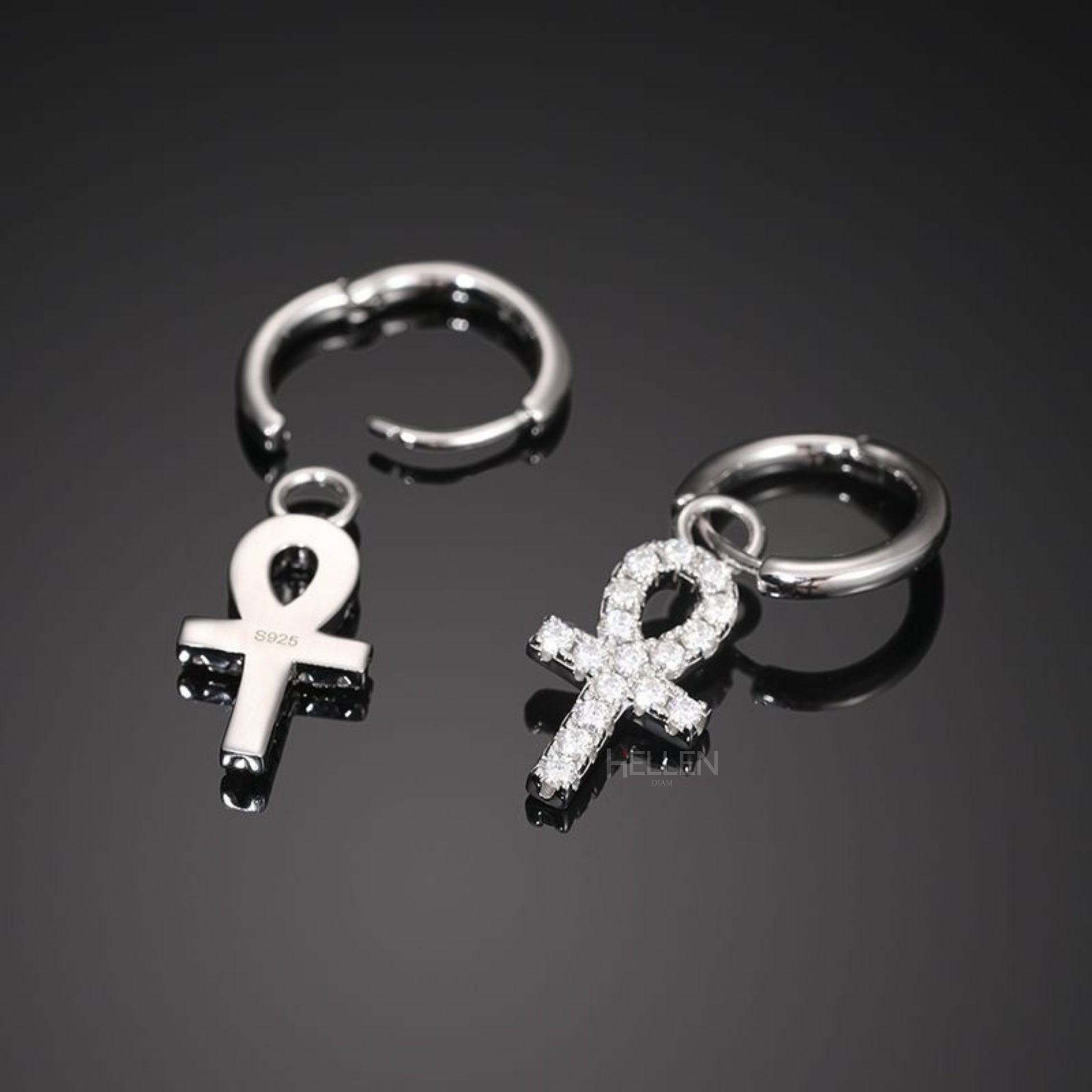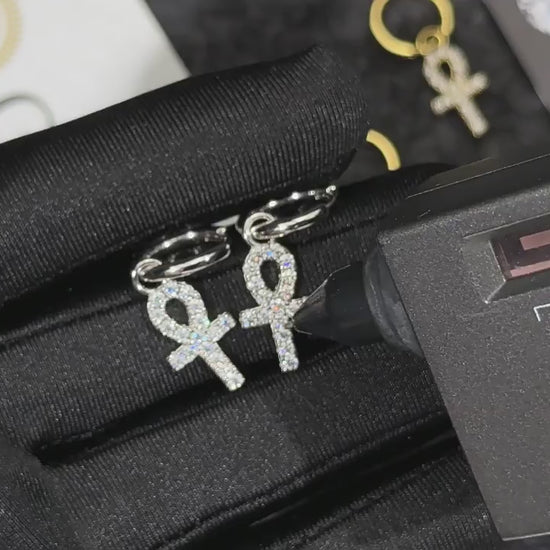 Men's Ankh Cross Dangle Earrings With Round Cut Moissanite