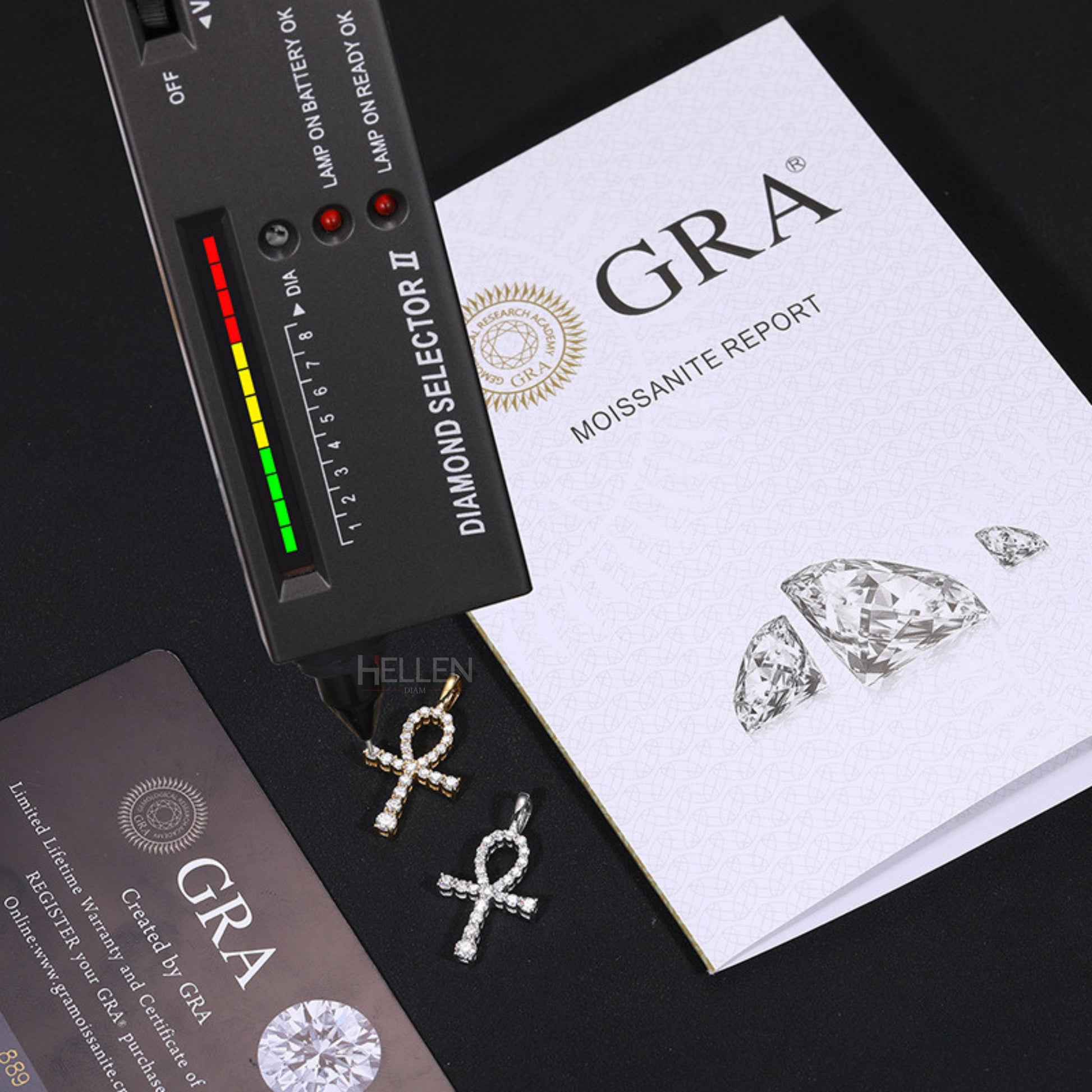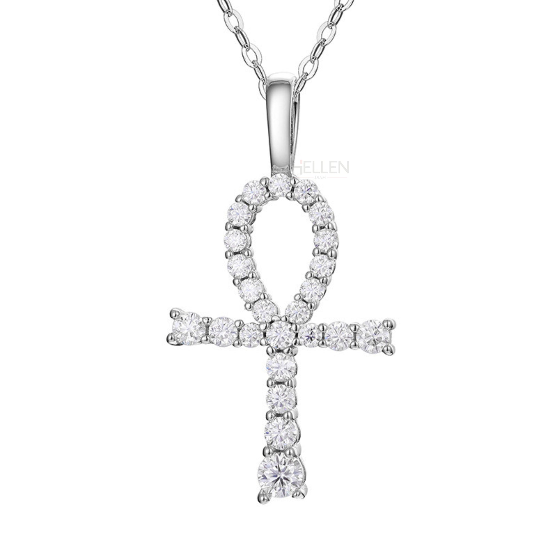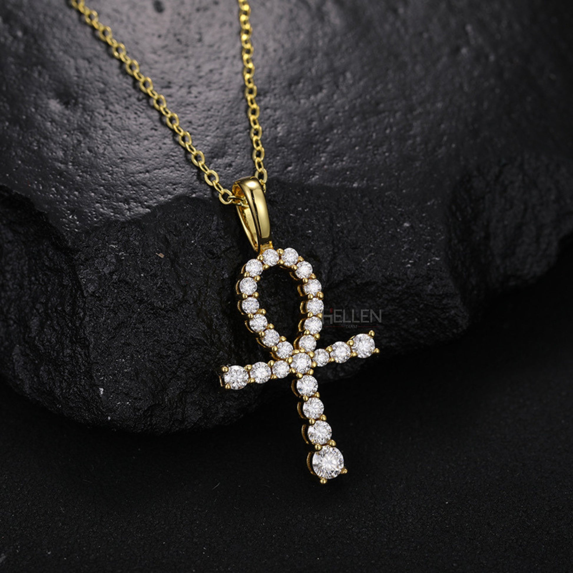 Men's Ankh Cross Pendant With Round Cut Moissanite