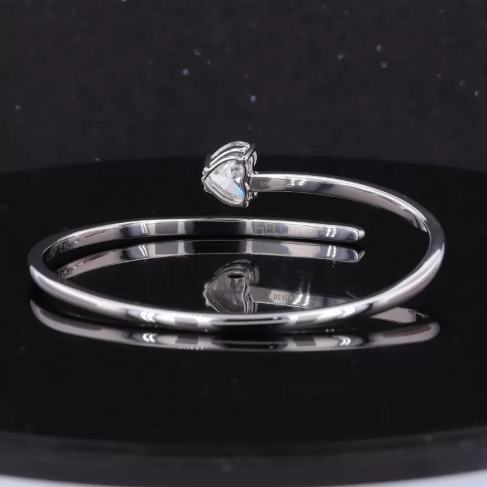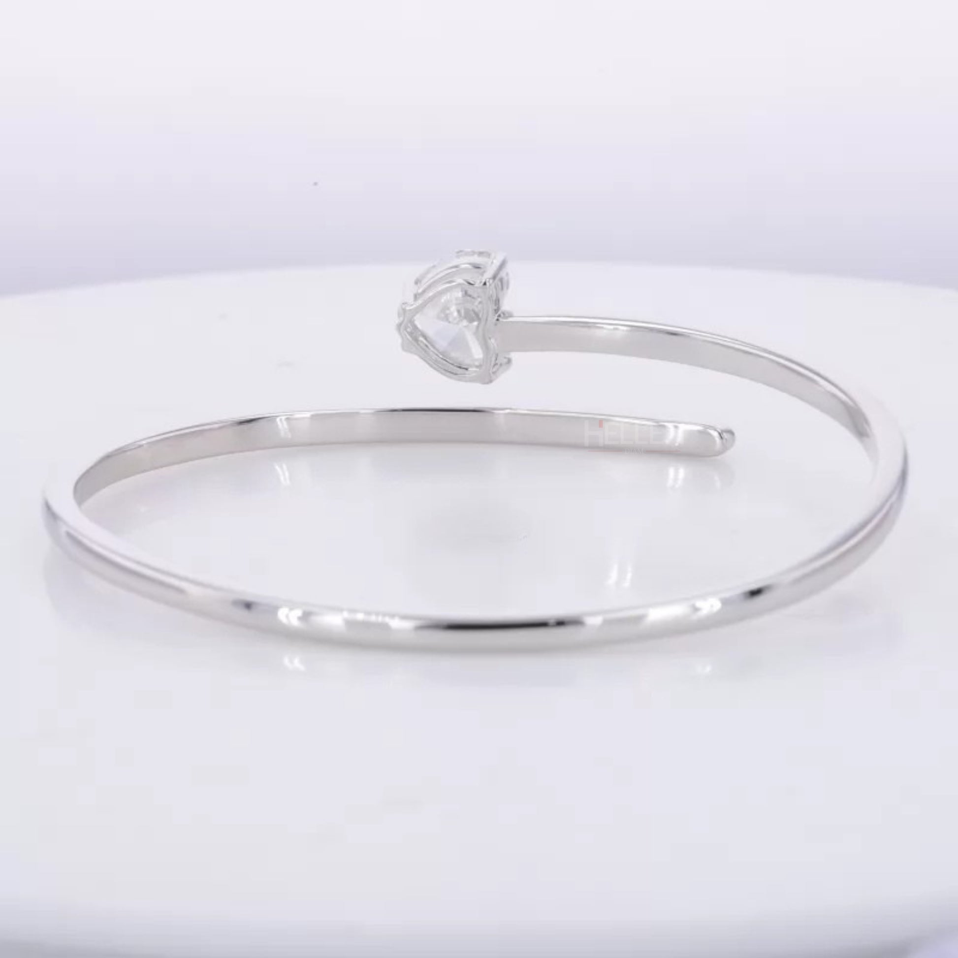 Open Gap Flexible Bracelet with Heart Cut Solitaire Moissanite