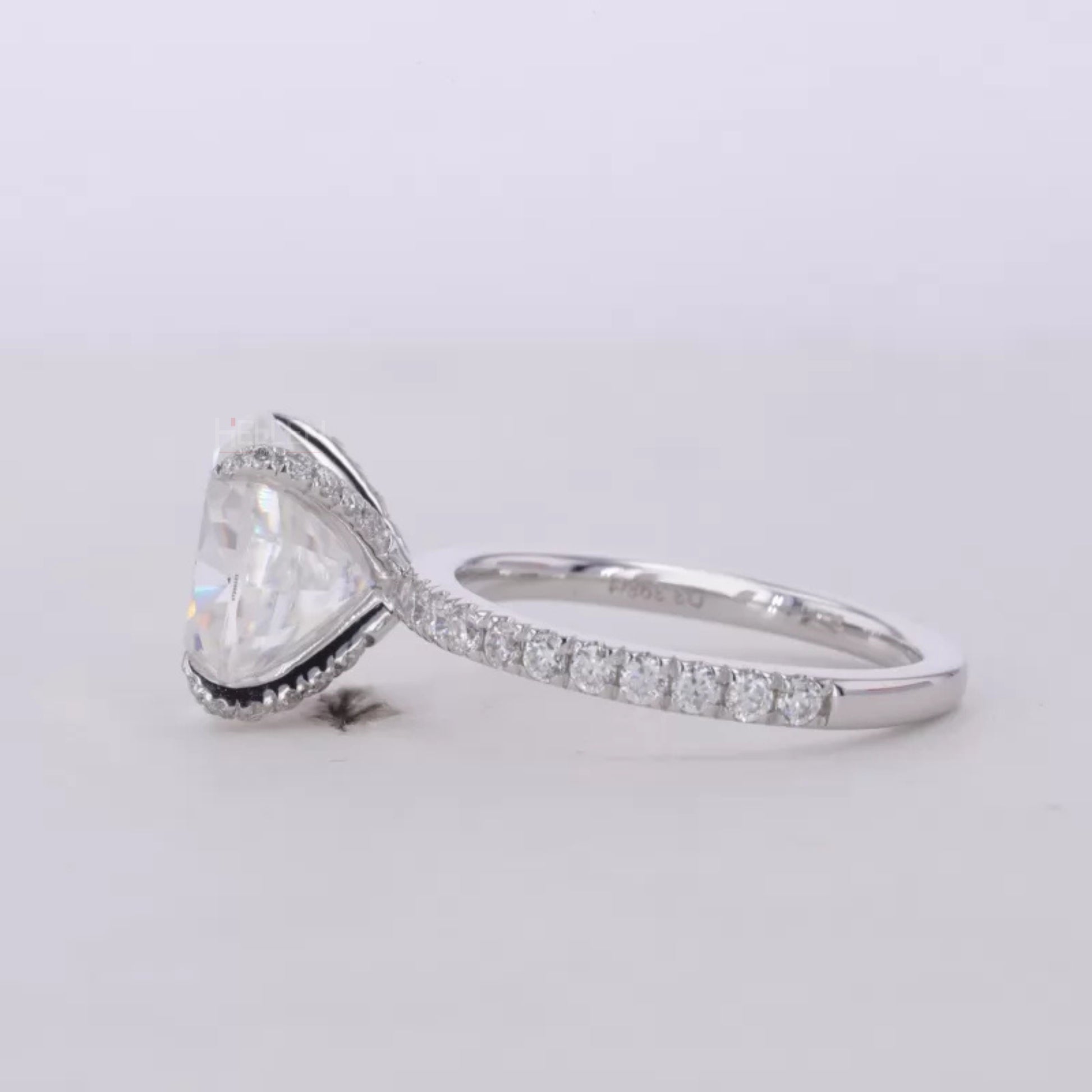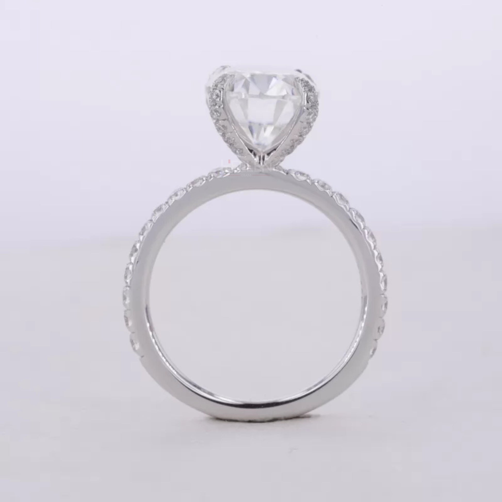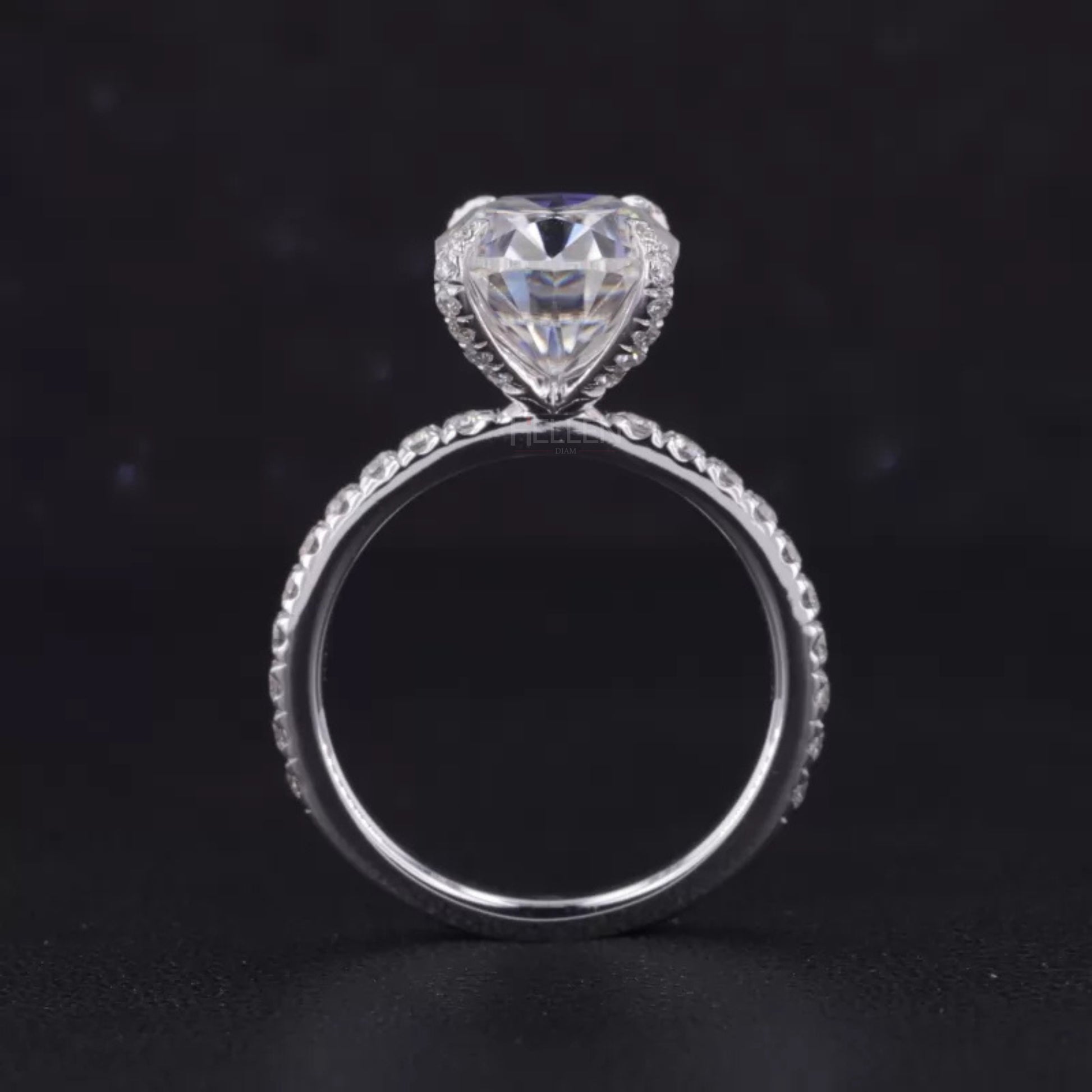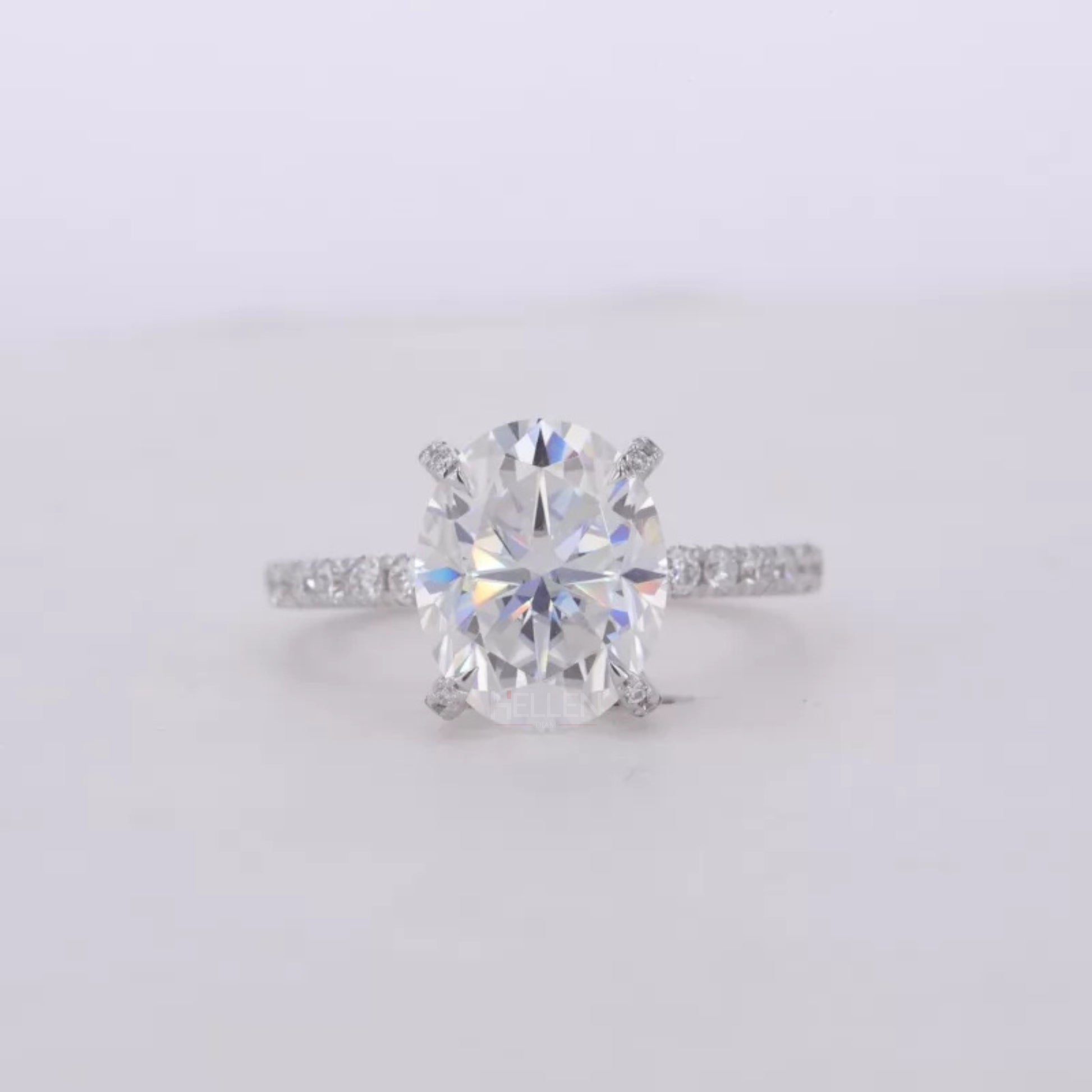 Oval Cut Moissanite Solitaire with Diamonds on Tiger Prongs Ring