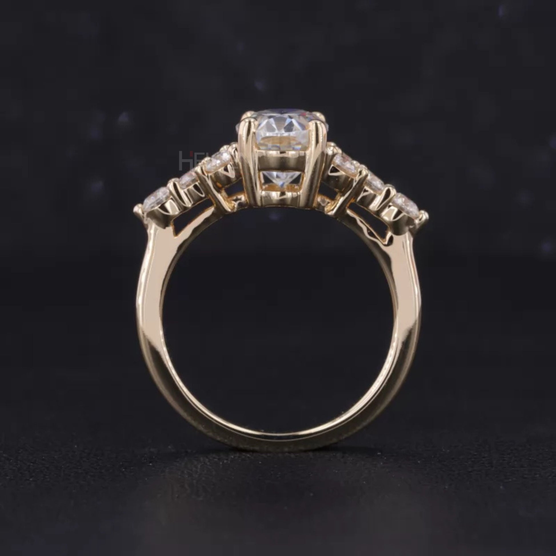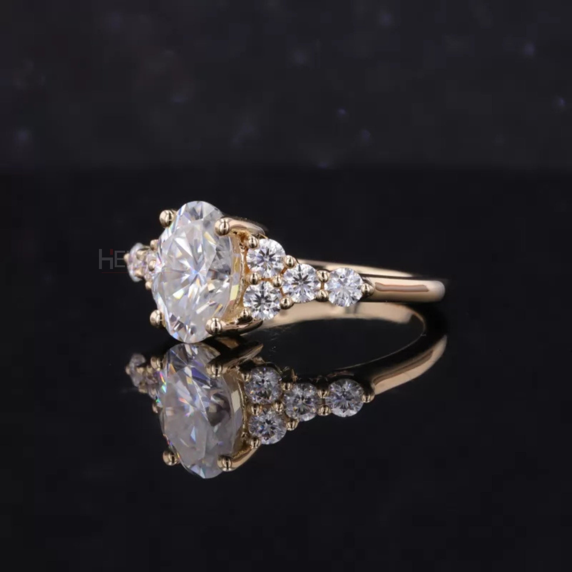 Oval Moissanite Solitaire & Round Cut Vintage Cluster Ring