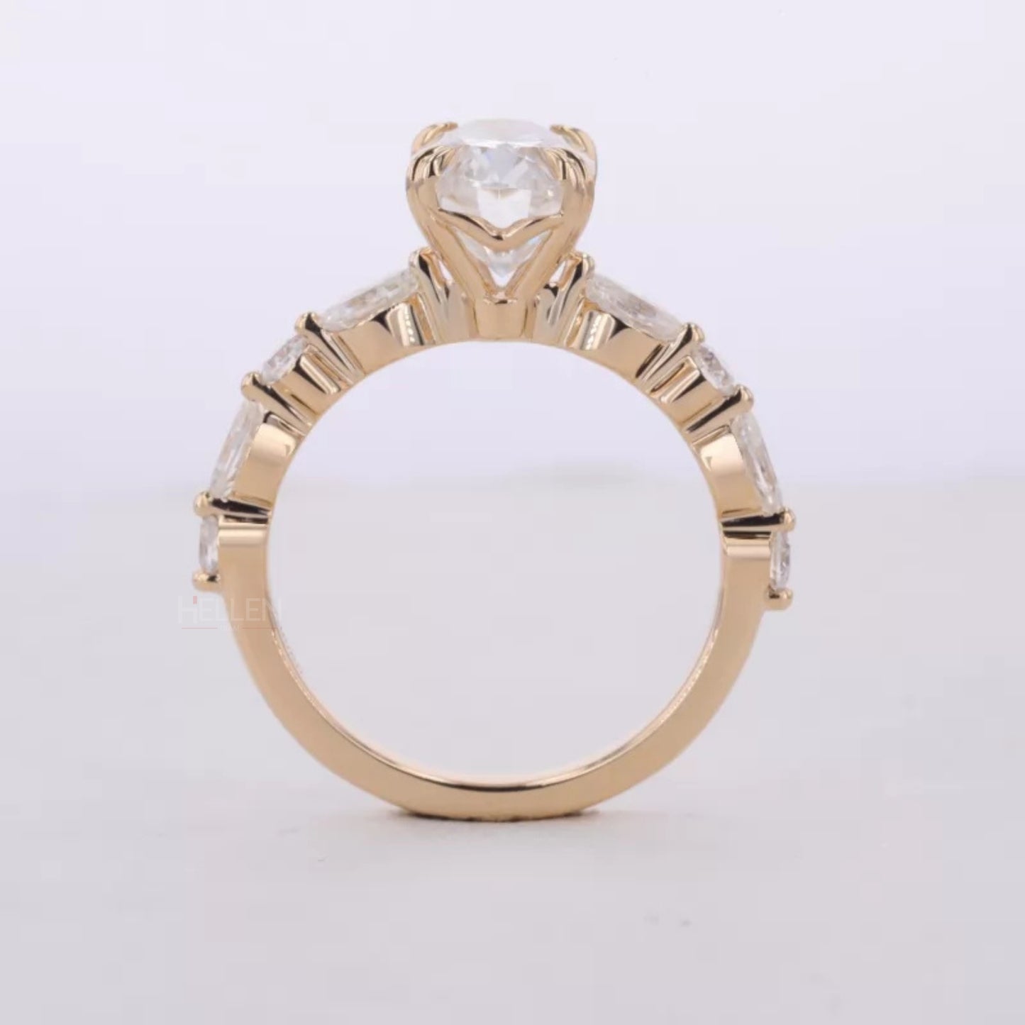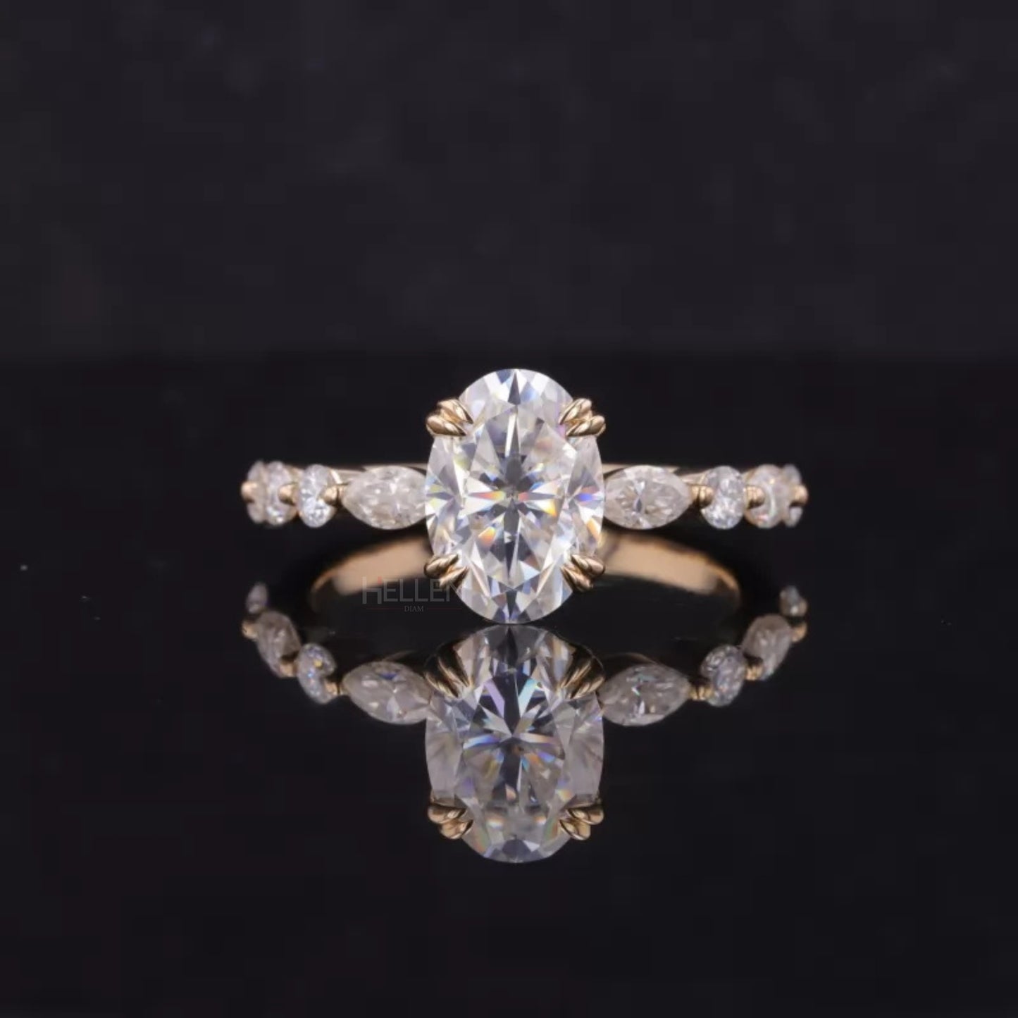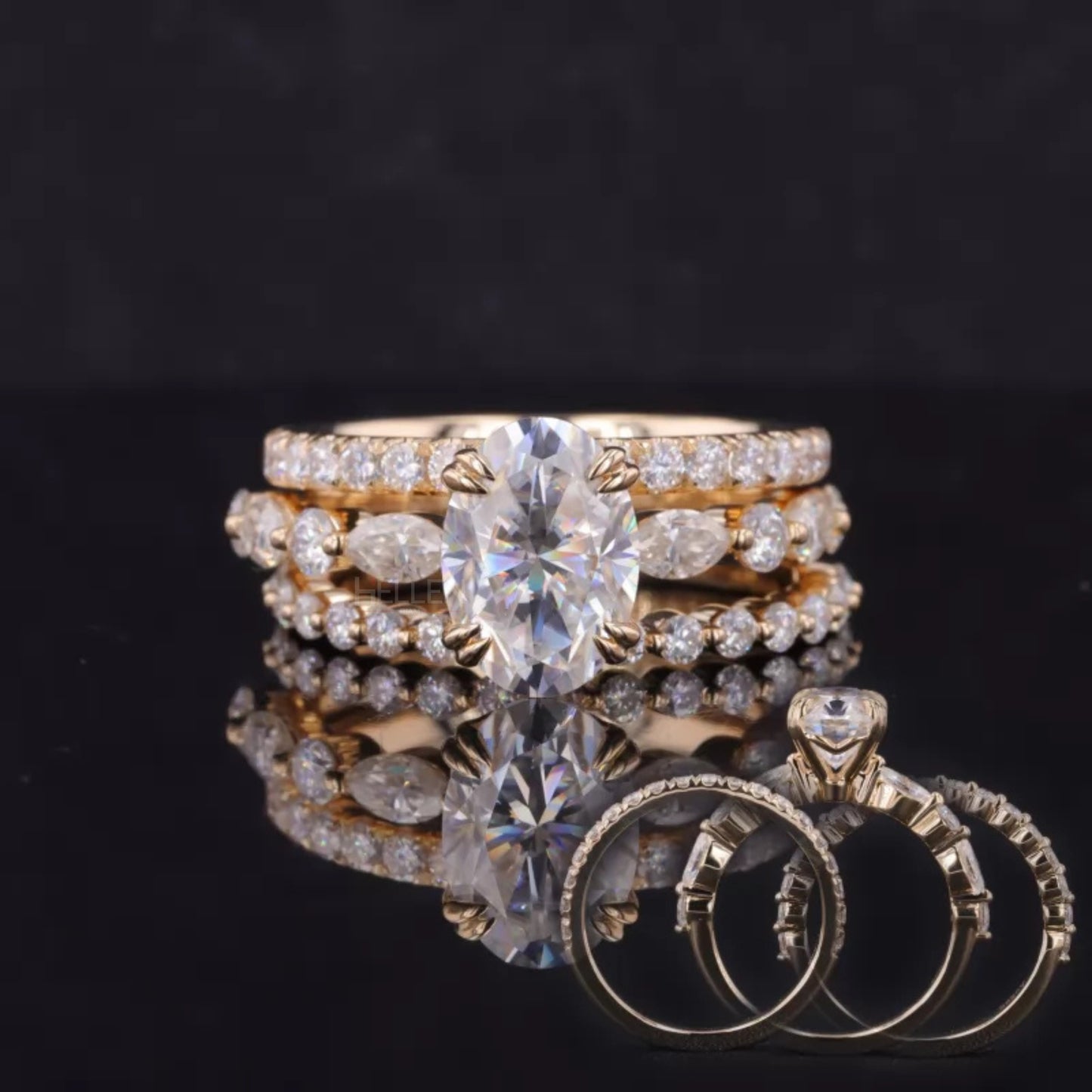 Oval Solitaire Engagement Ring With 2 Stackable Half Eternity Band