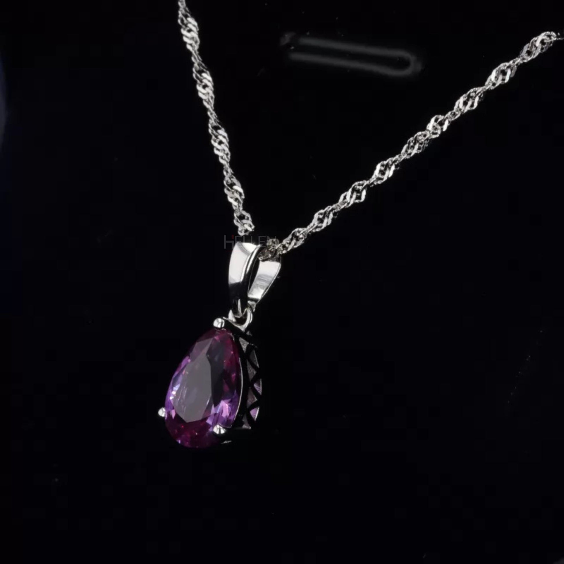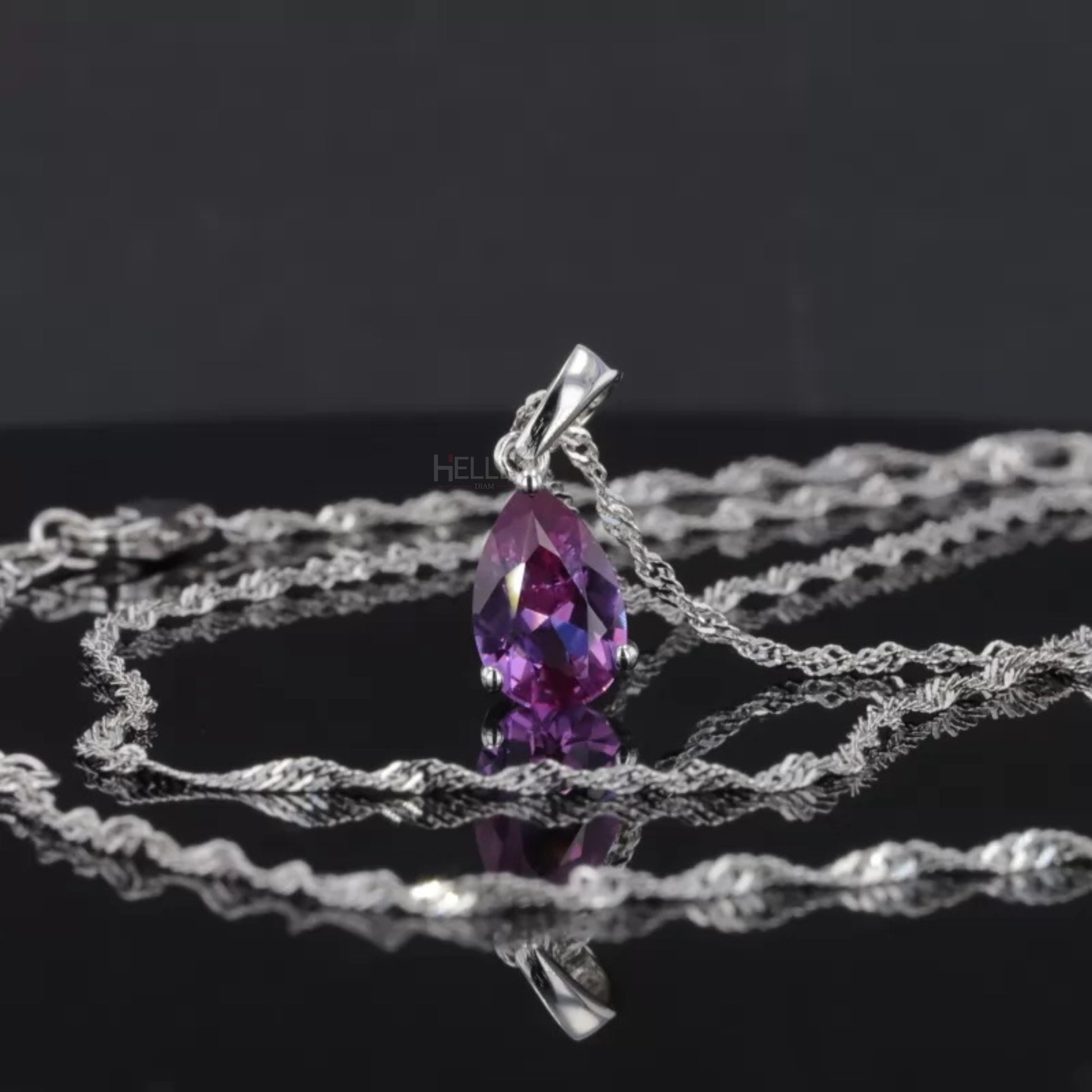Pear Cut Purple Gemstone Solitaire Disco Chain Necklace