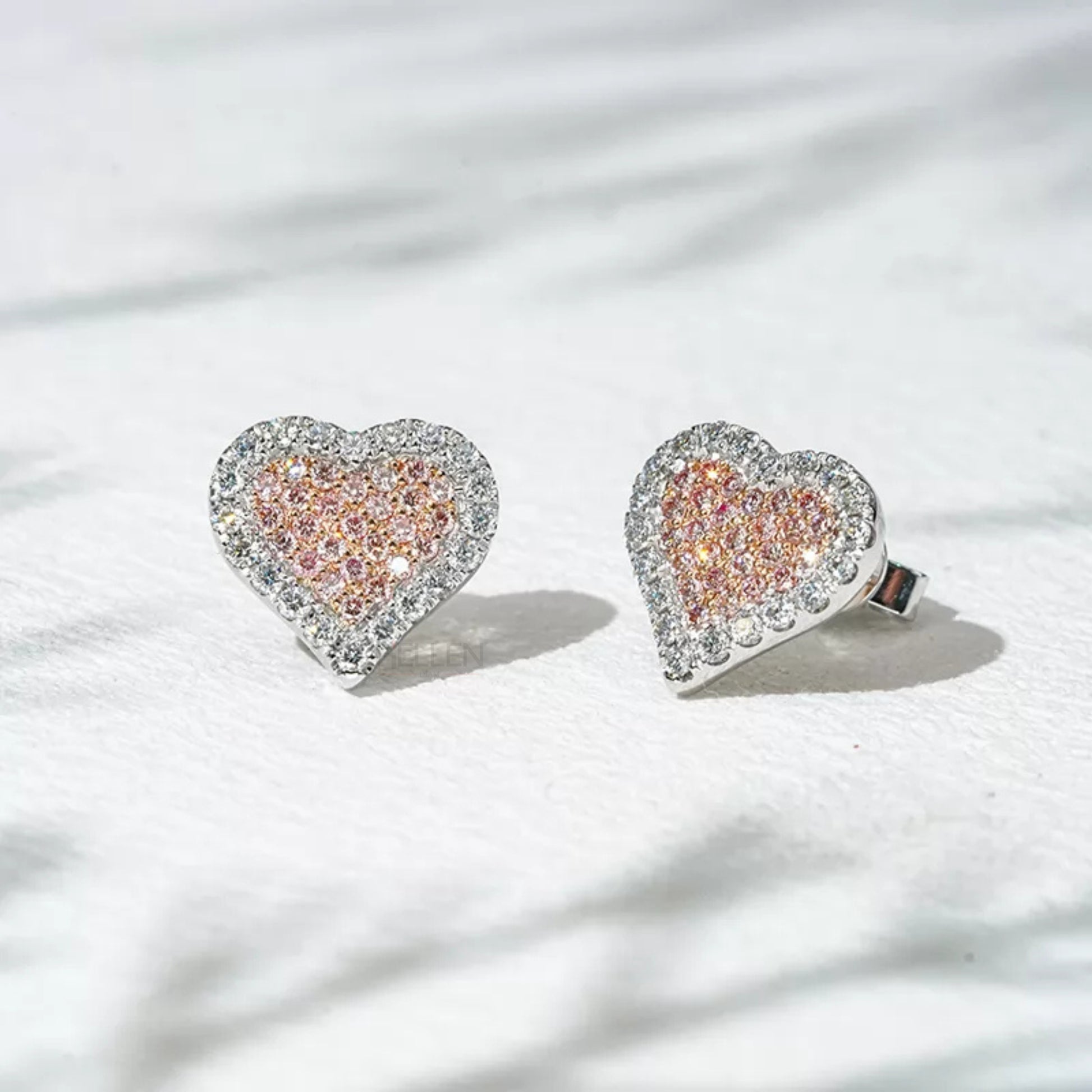 Pink Gemstone And Colorless Moissanite Heart shaped Studs