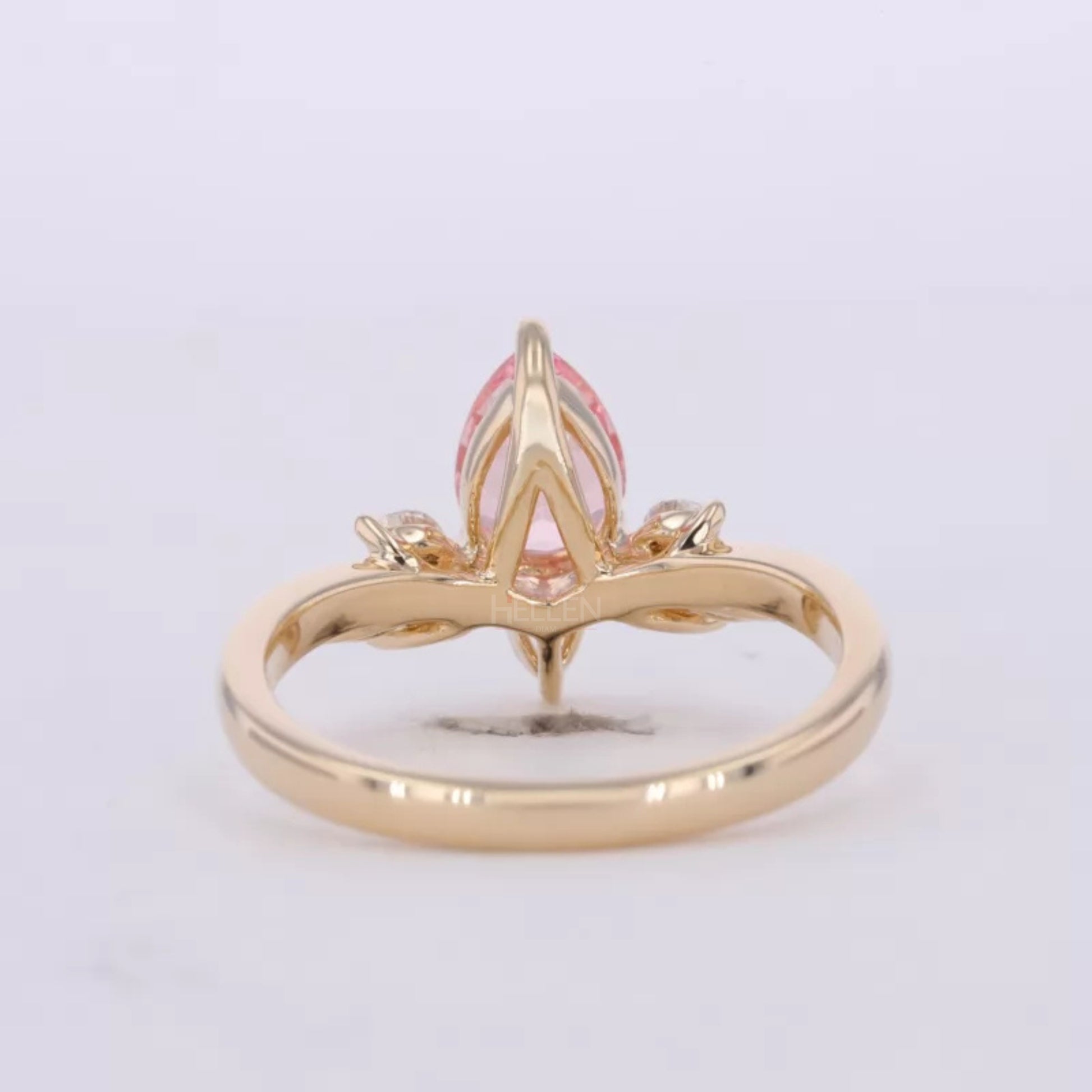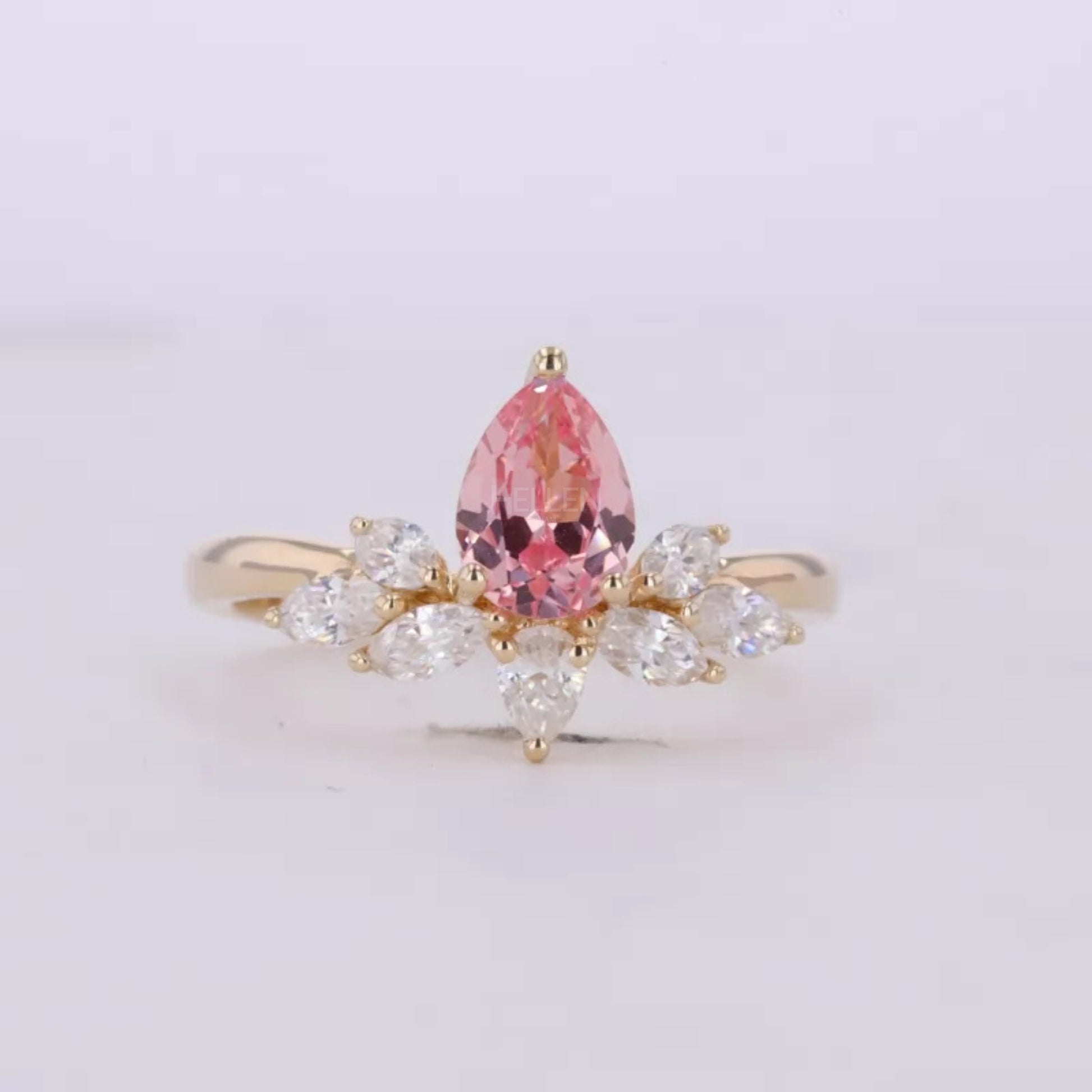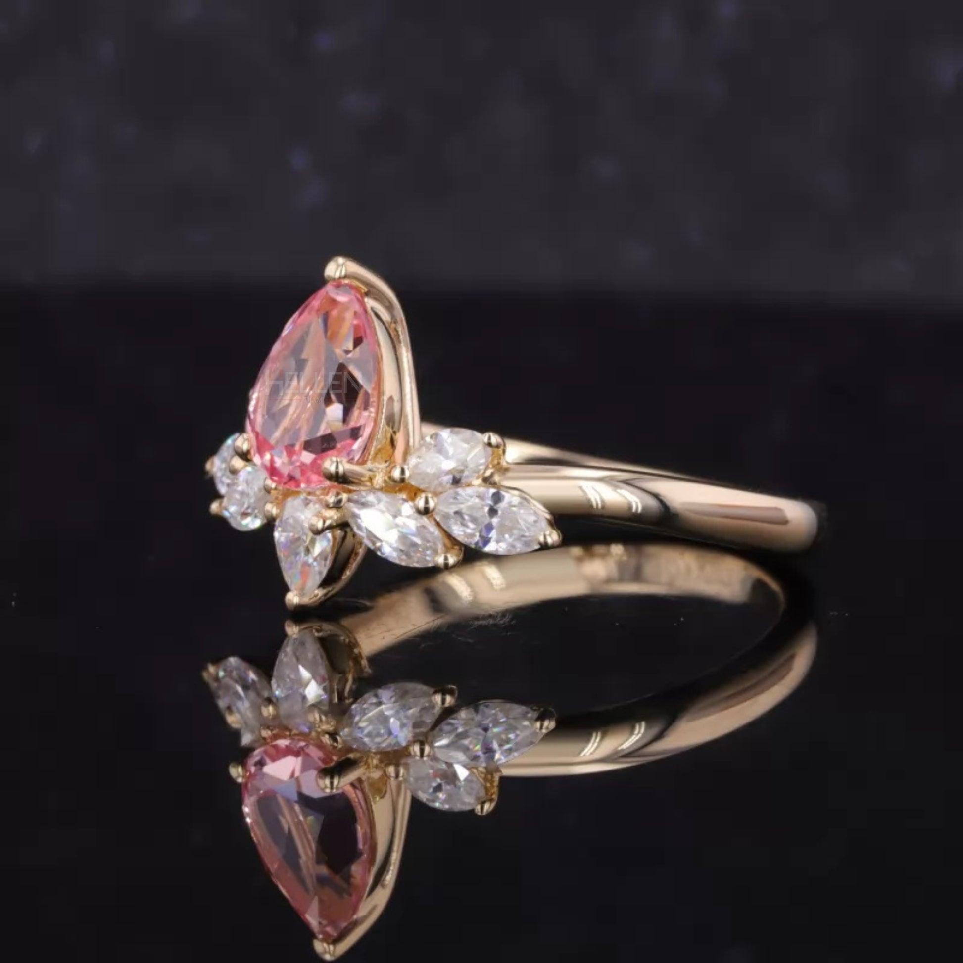 Pink Sapphire Pear Cut Gemstone & Moissanite Flower Proposal Ring