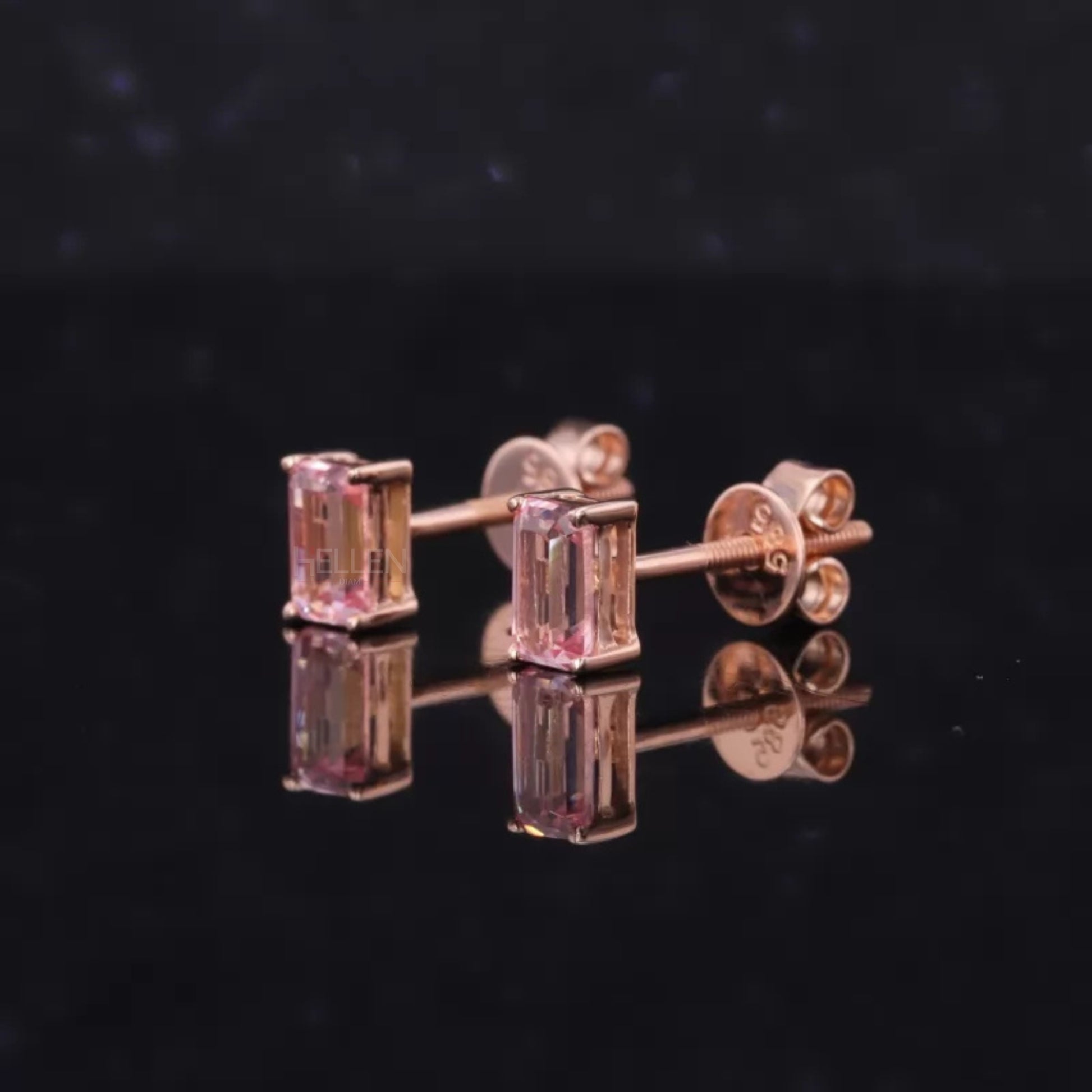 Pink Semi-Precious Emerald Cut Gemstone Studs