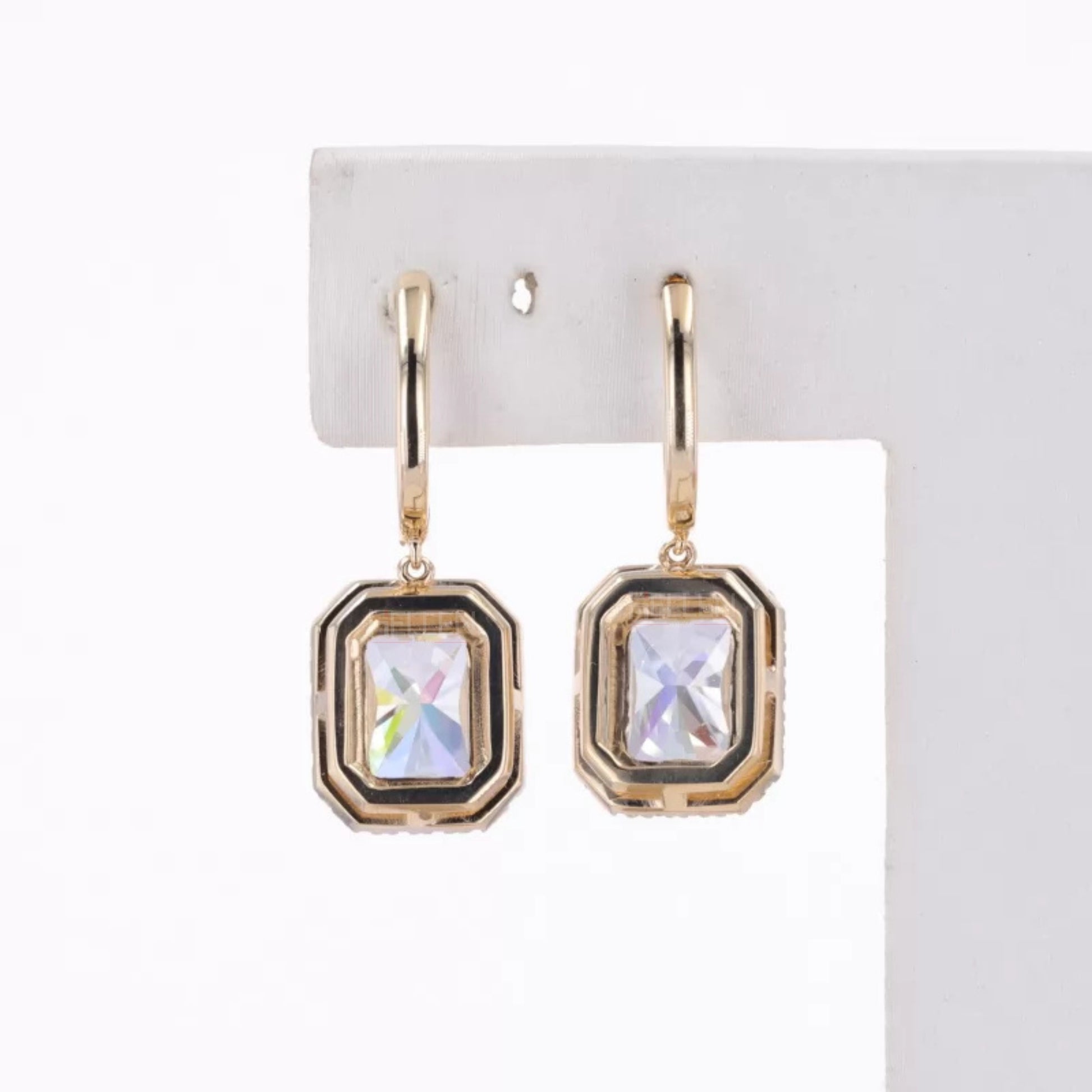 Radiant Cut Moissanite Halo Drop Earrings - Sterling Silver Luxury Jewelry