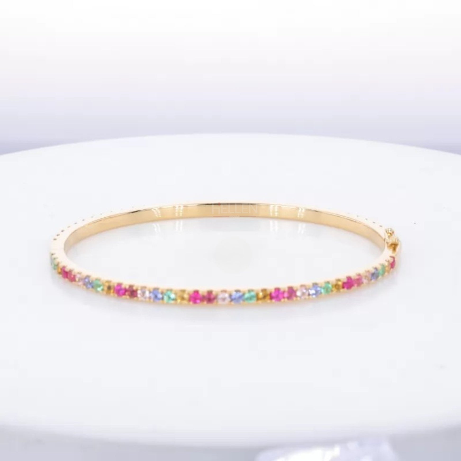 Rainbow Round Cut Gemstone Bracelet -925 Silver