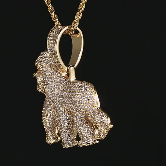 Roaring King Gorilla Ice Out Pendant Necklace For Men's