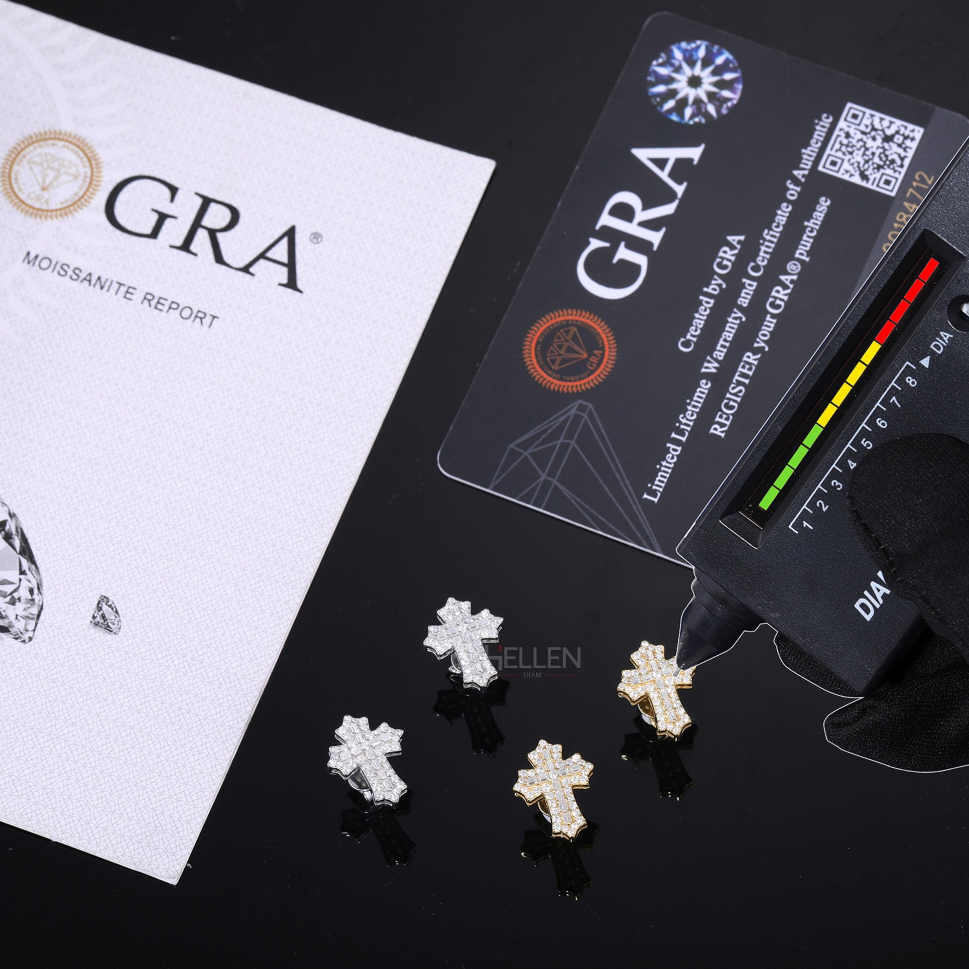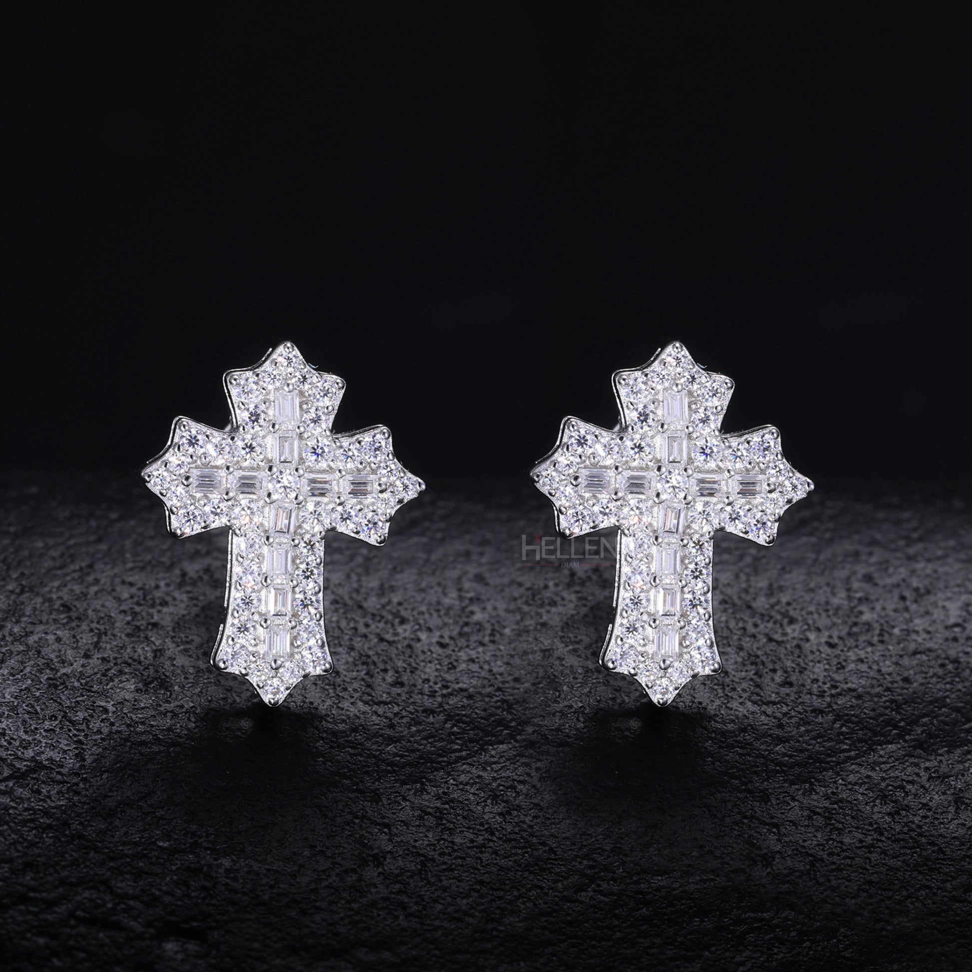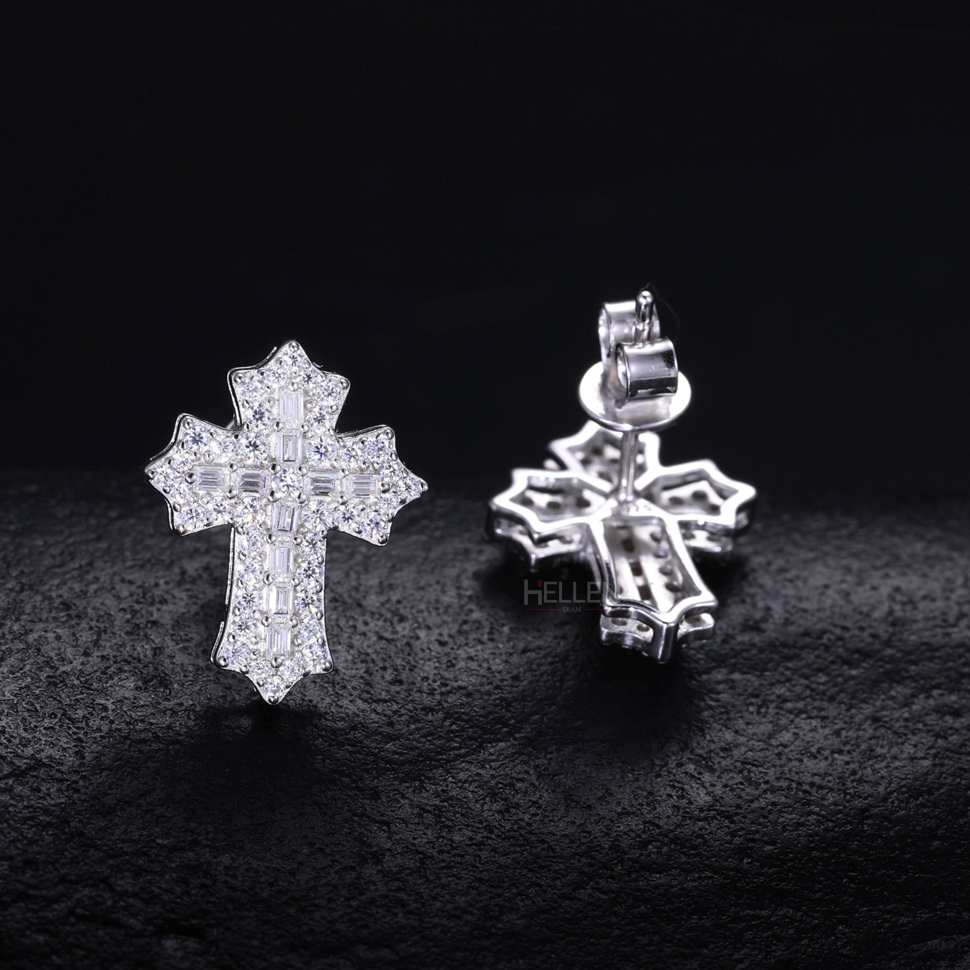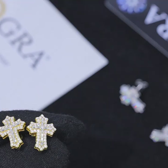 Round And Baguette Moissanite Studded Cross Hip-Hop Studs