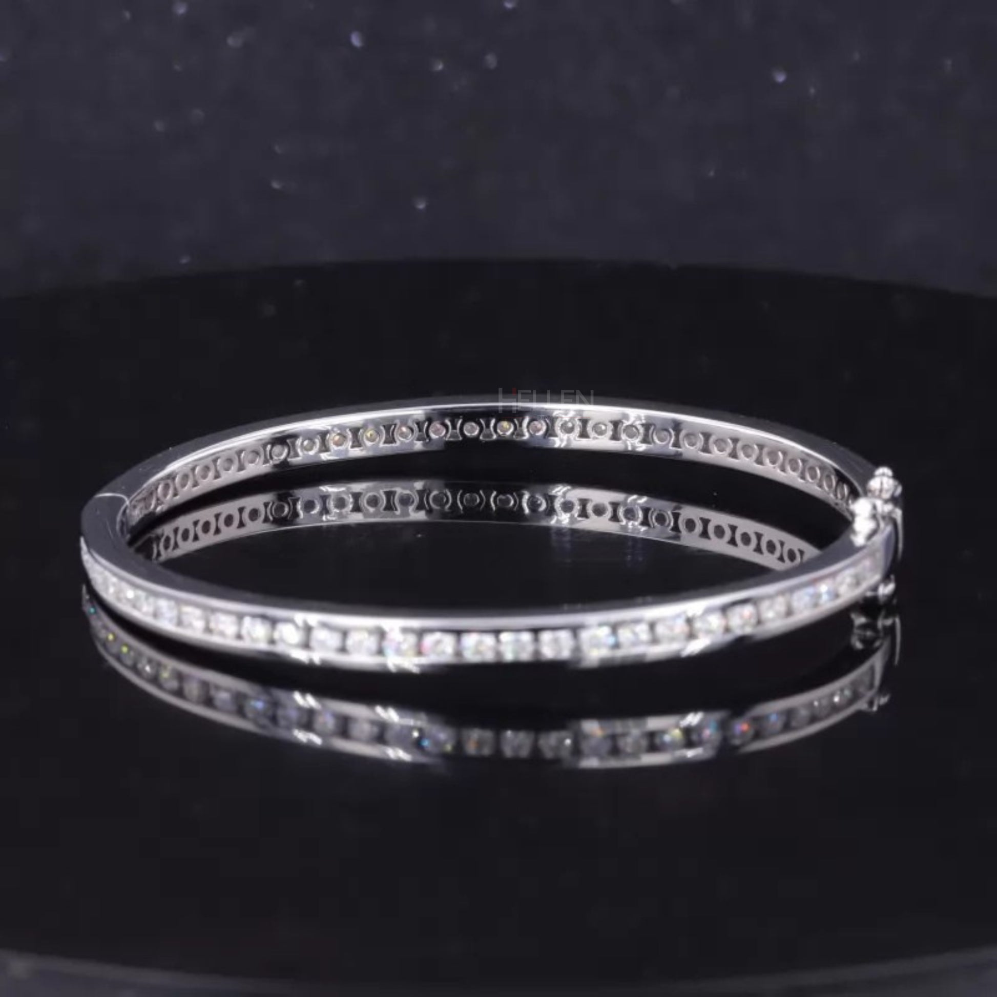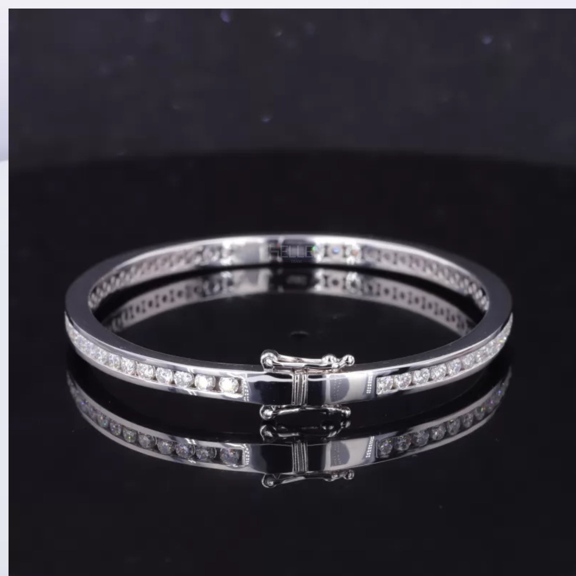 Round Cut Full Channel Setting Moissanite Bangle Bracelet