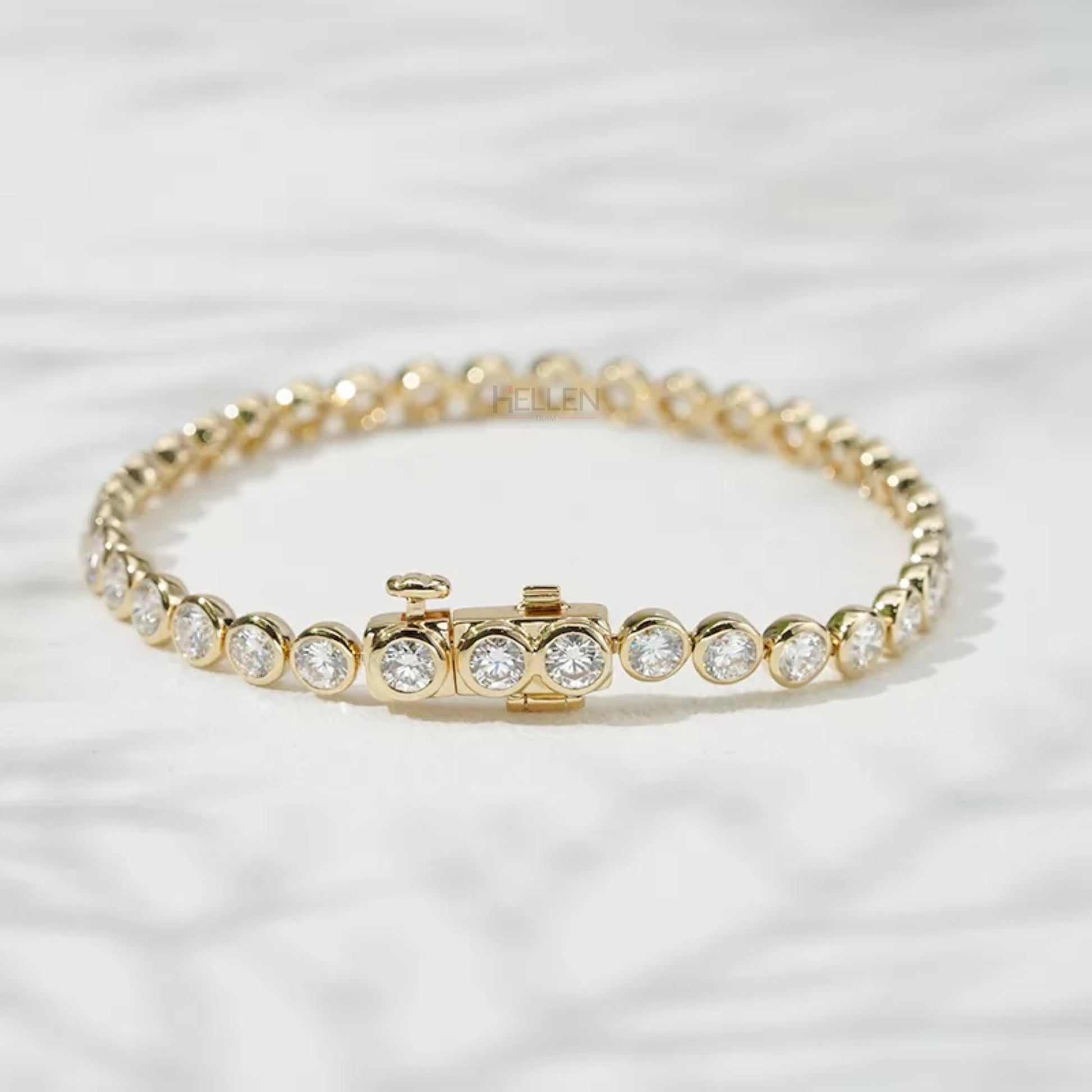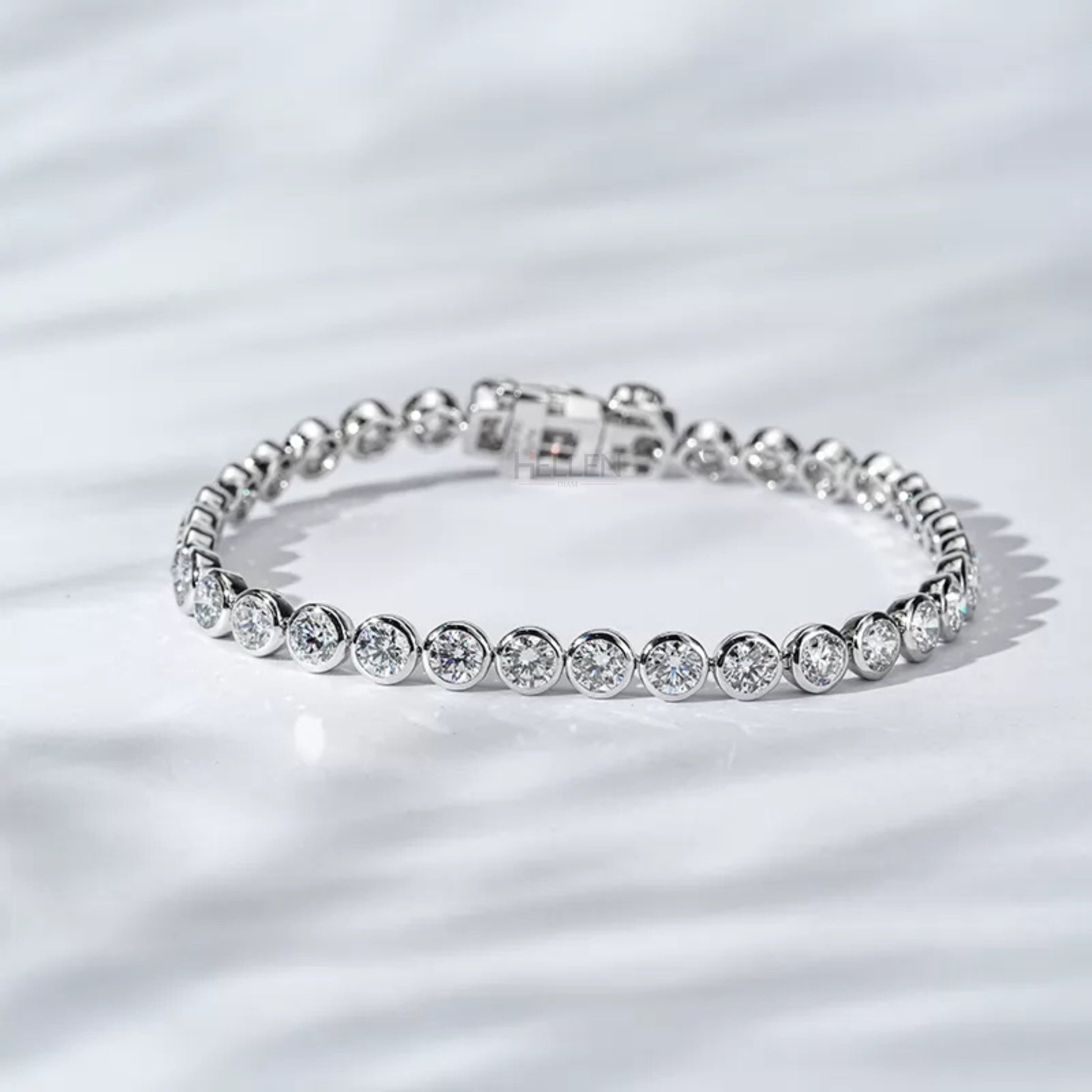Round Cut Moissanite Bezel setting Must Have Tennis Bracelet
