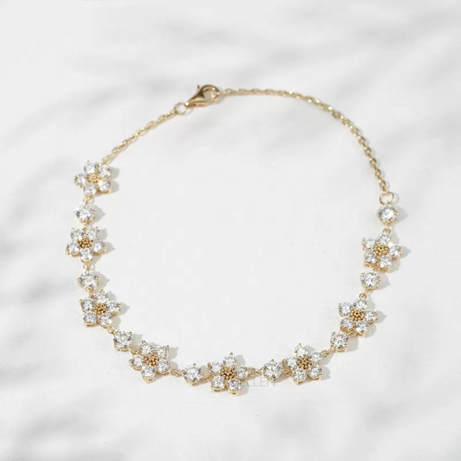Round Cut Moissanite Floral Concept Loose Bracelet For Everyday