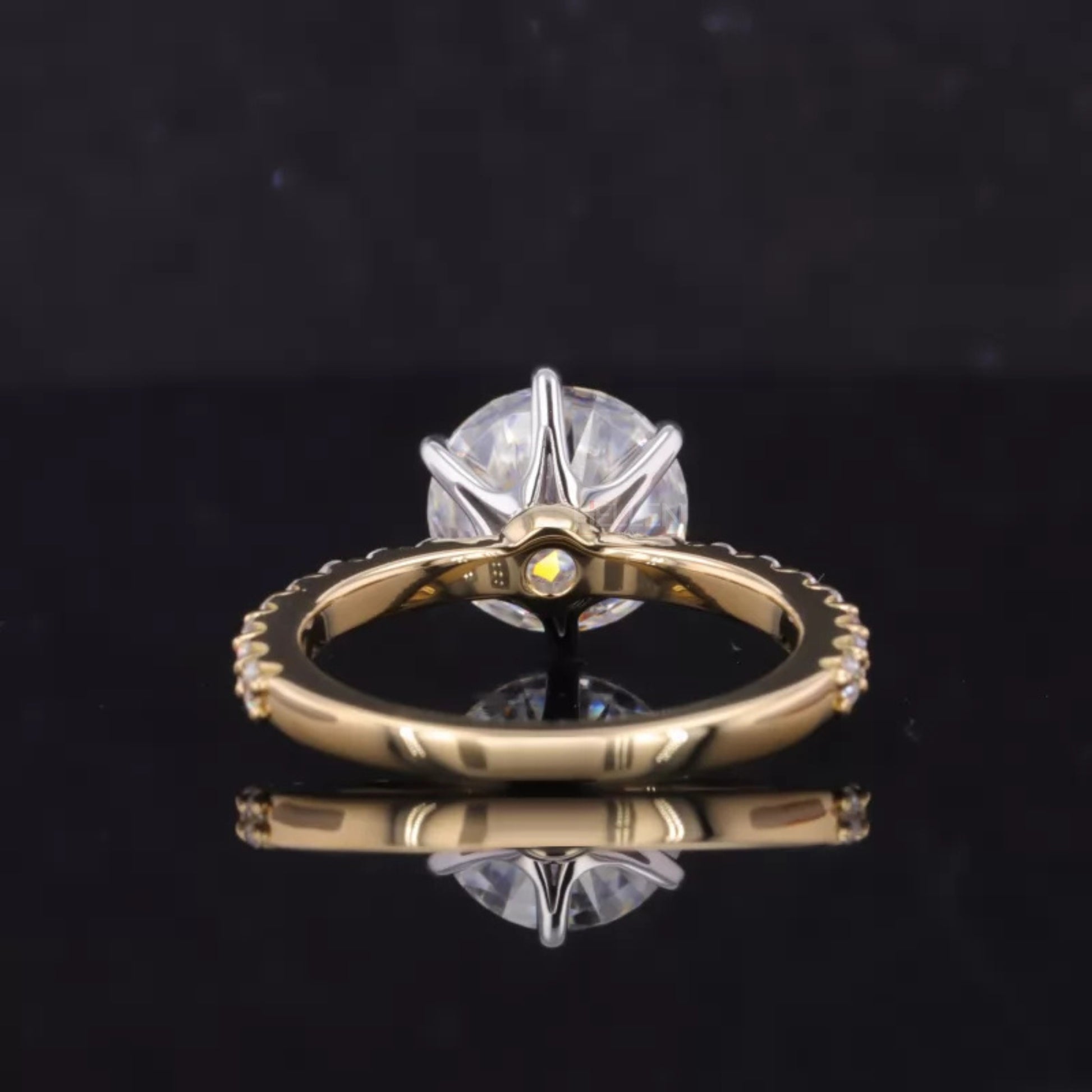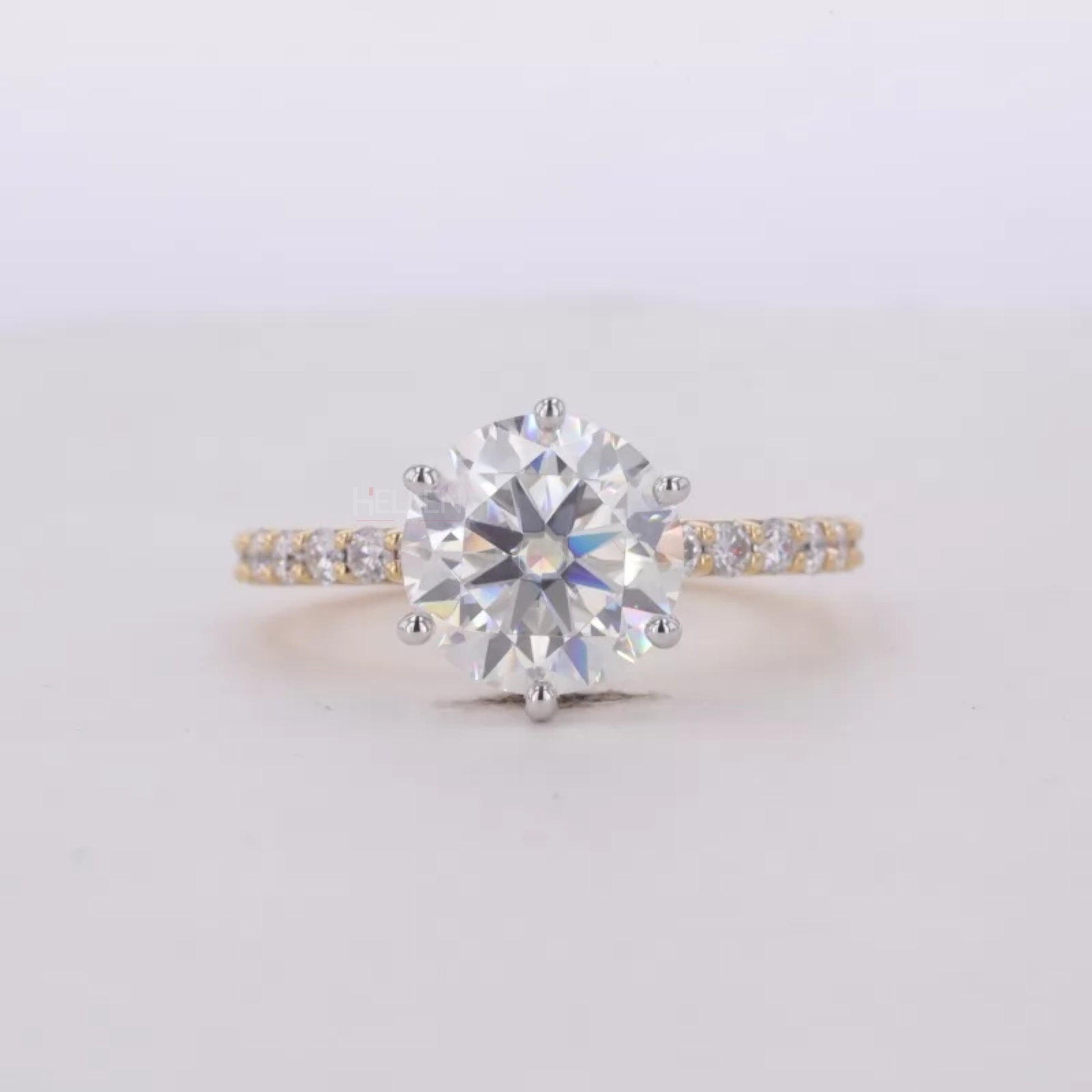 Round Cut Solitaire Moissanite 2-Tone Ring with Diamonds on Shank