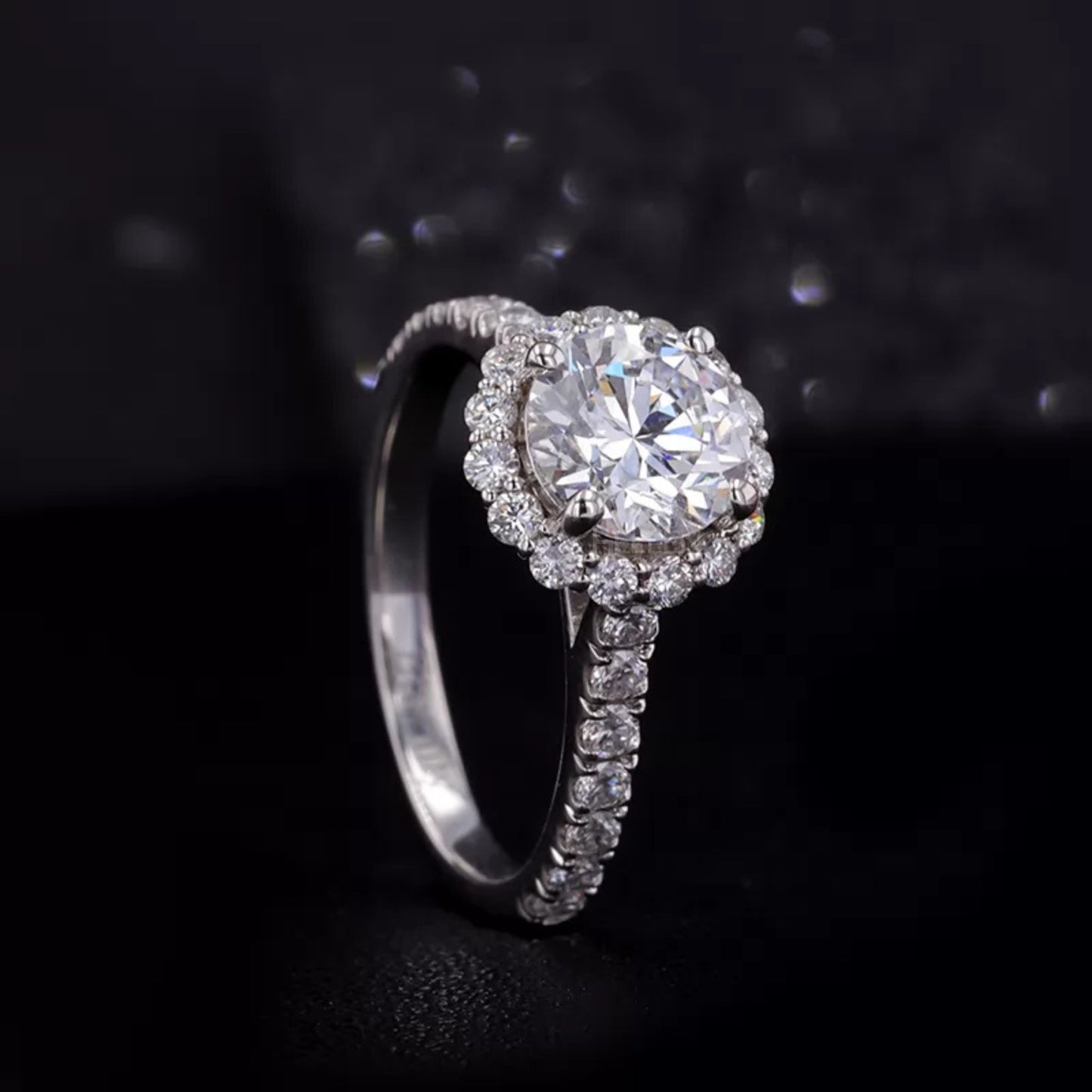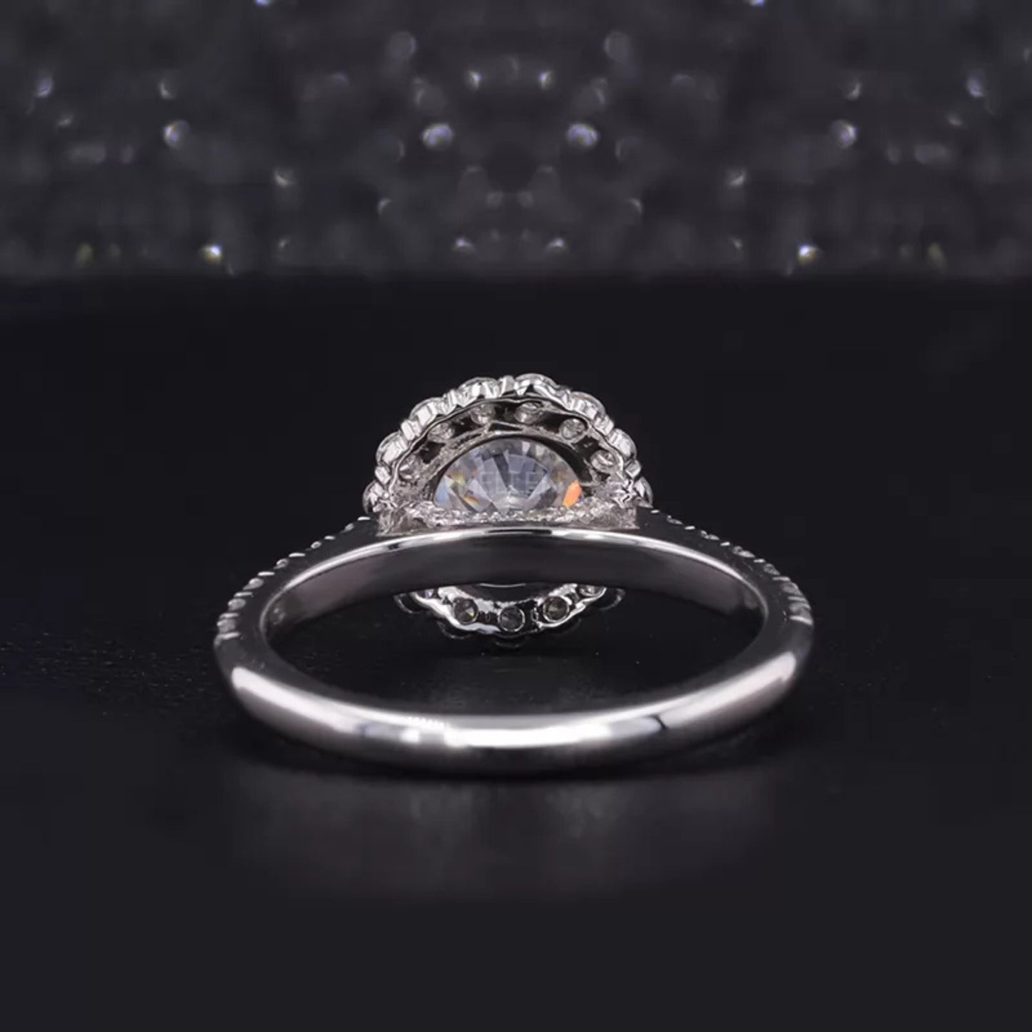 Round Cut Solitaire Moissanite Halo Pave Engagement Ring