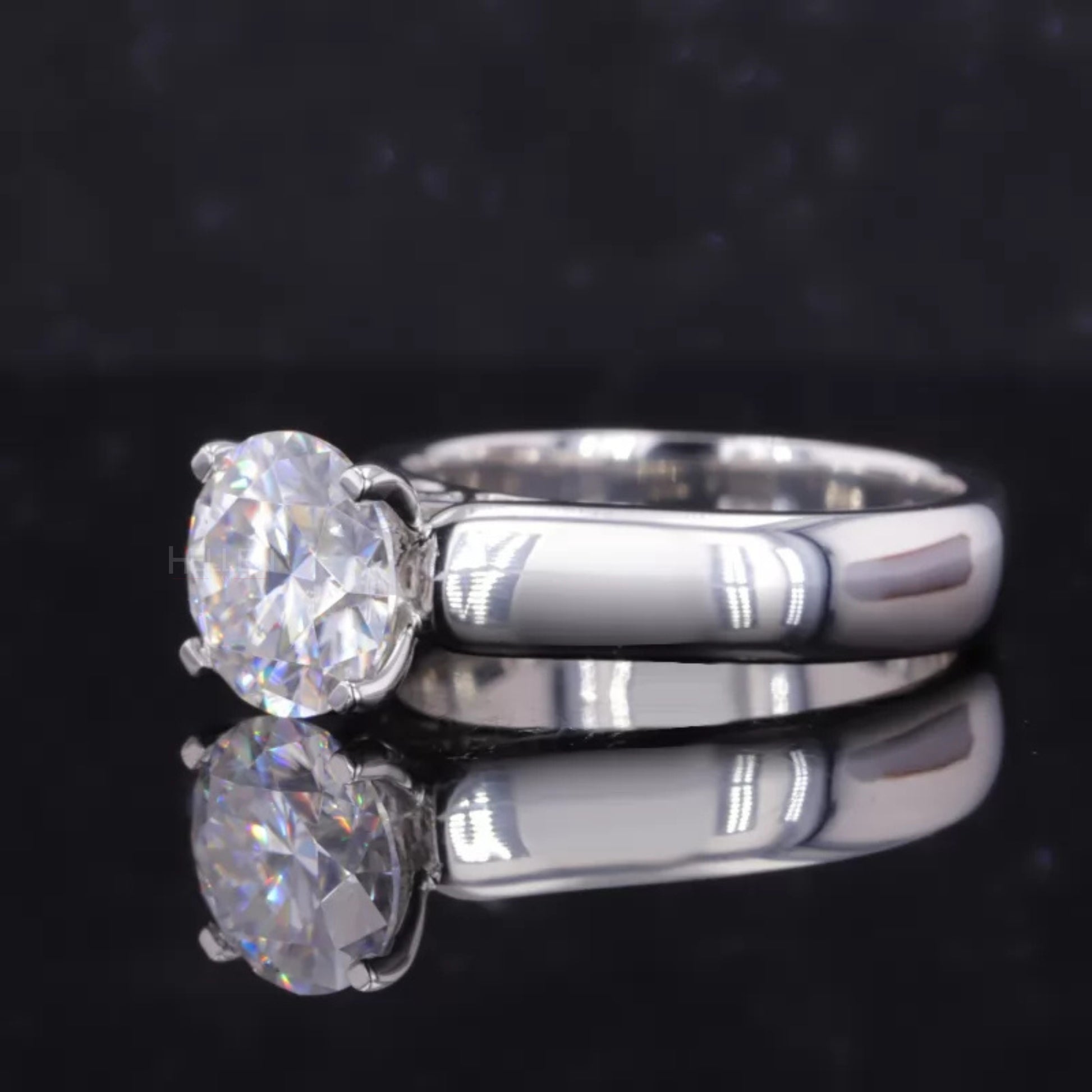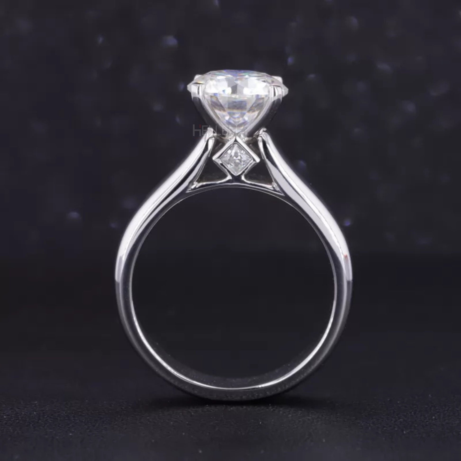 Round Cut Solitaire Moissanite Hidden Halo Engagement Ring