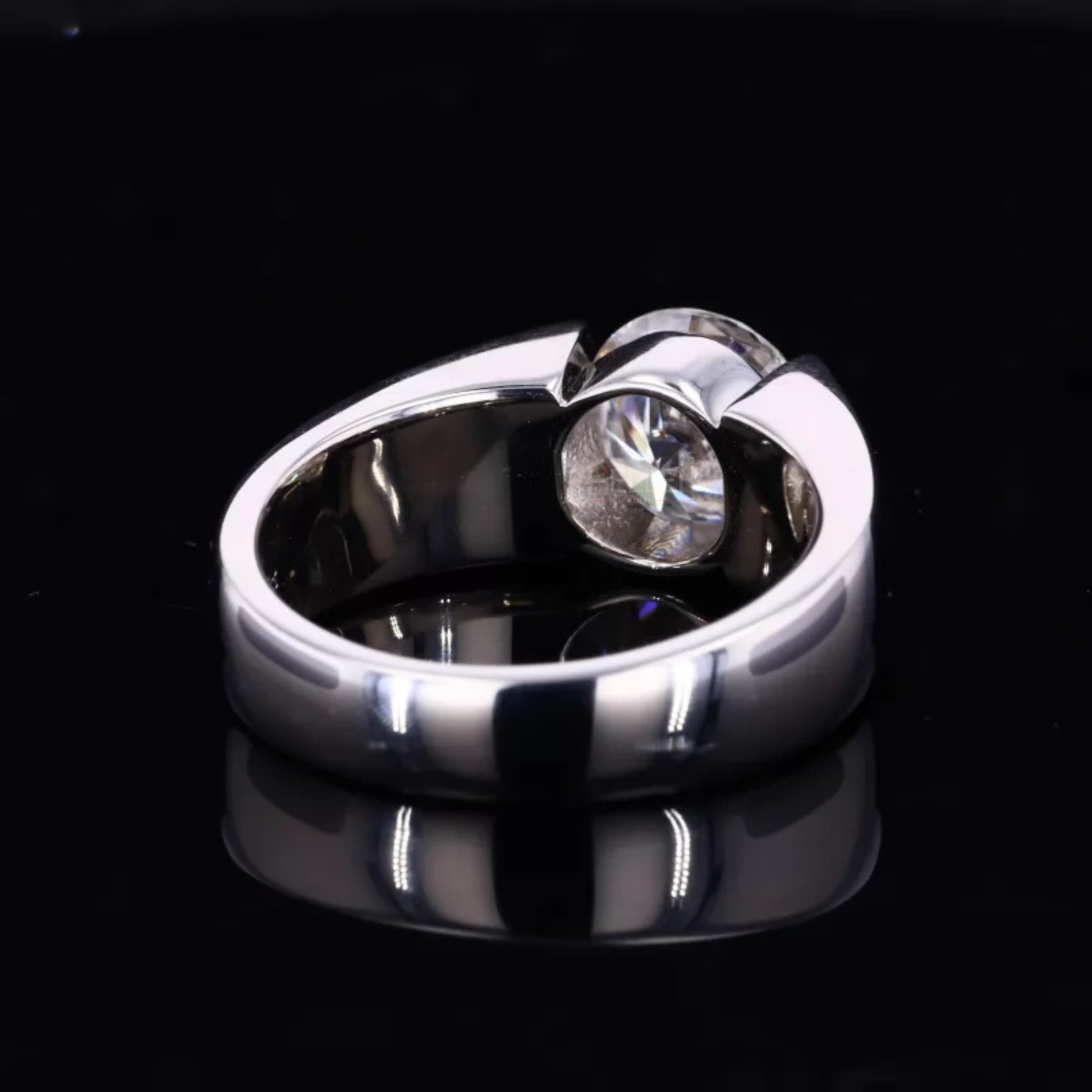 Round Cut Solitaire Moissanite Mens Engagement Ring