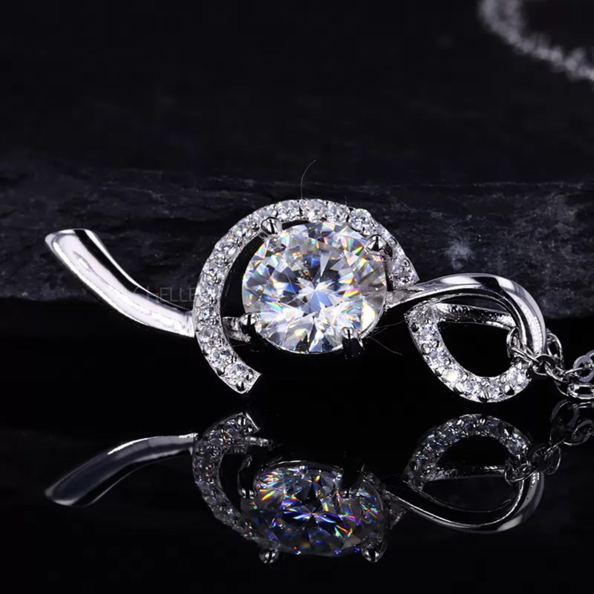 Round Cut Solitaire & Music Notes Moissanite Necklace