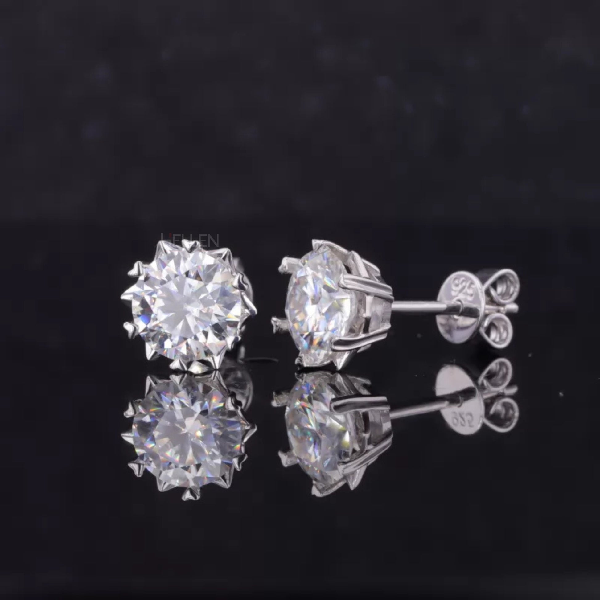Round Cut VVS Moissanite Stud with Heart-Shaped Prongs