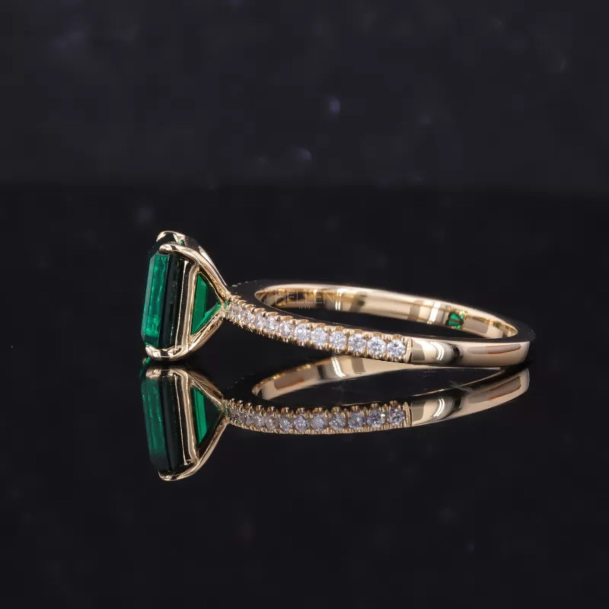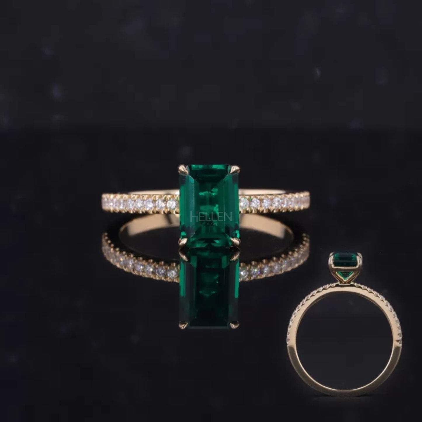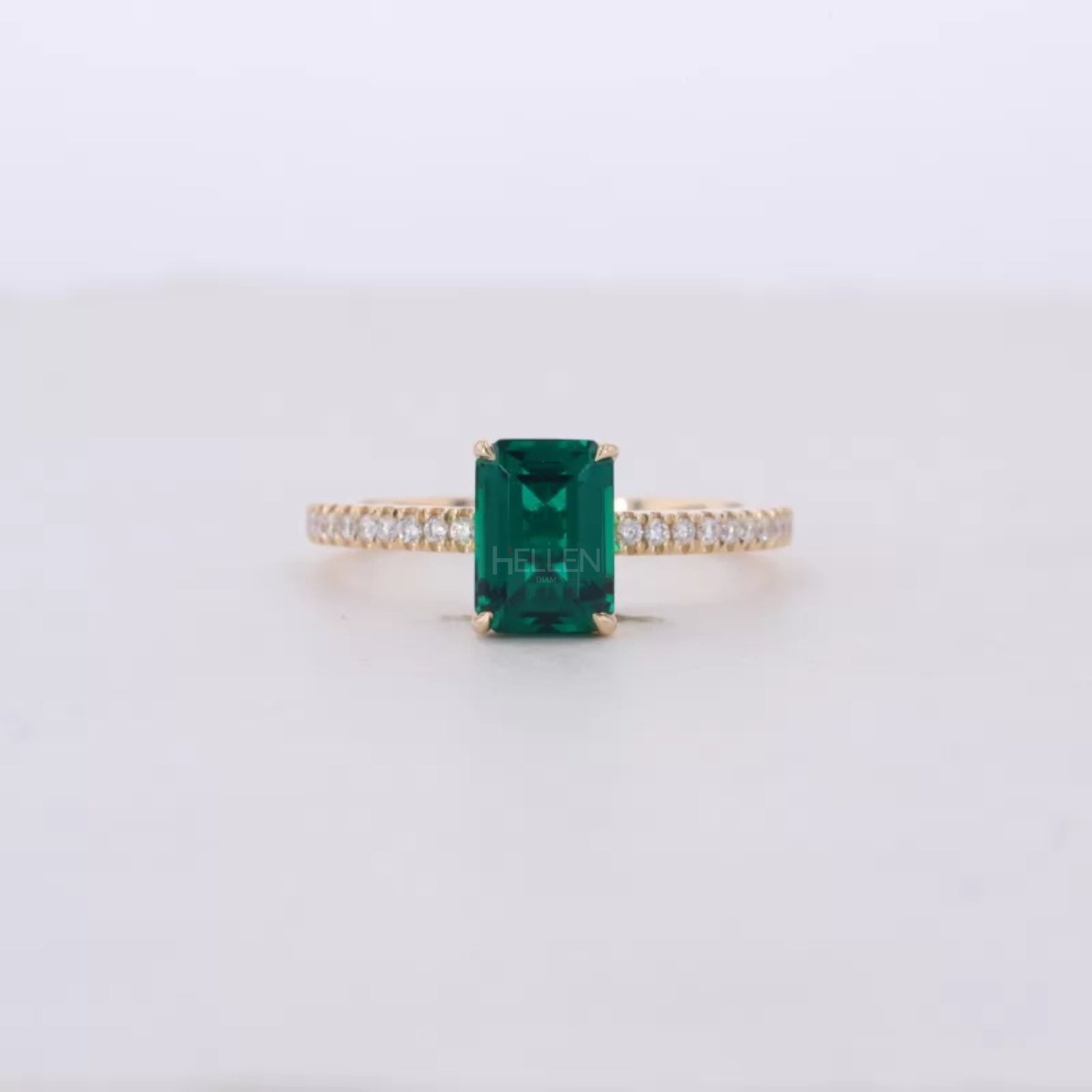 Solitaire Emerald Gemstone & Moissanite Engagement Ring