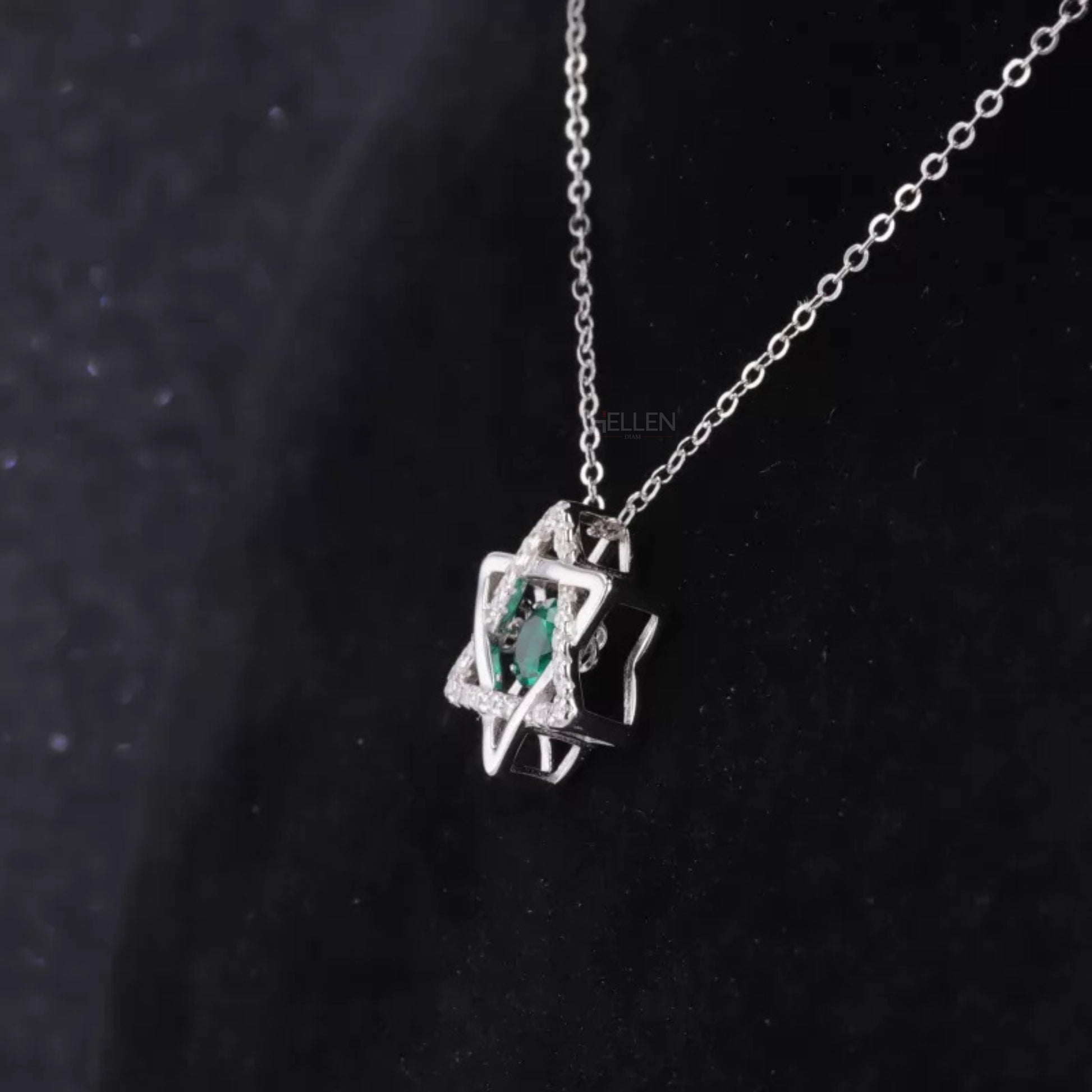 Star Shaped Green Emerald & Moissanite Gemstone Necklace