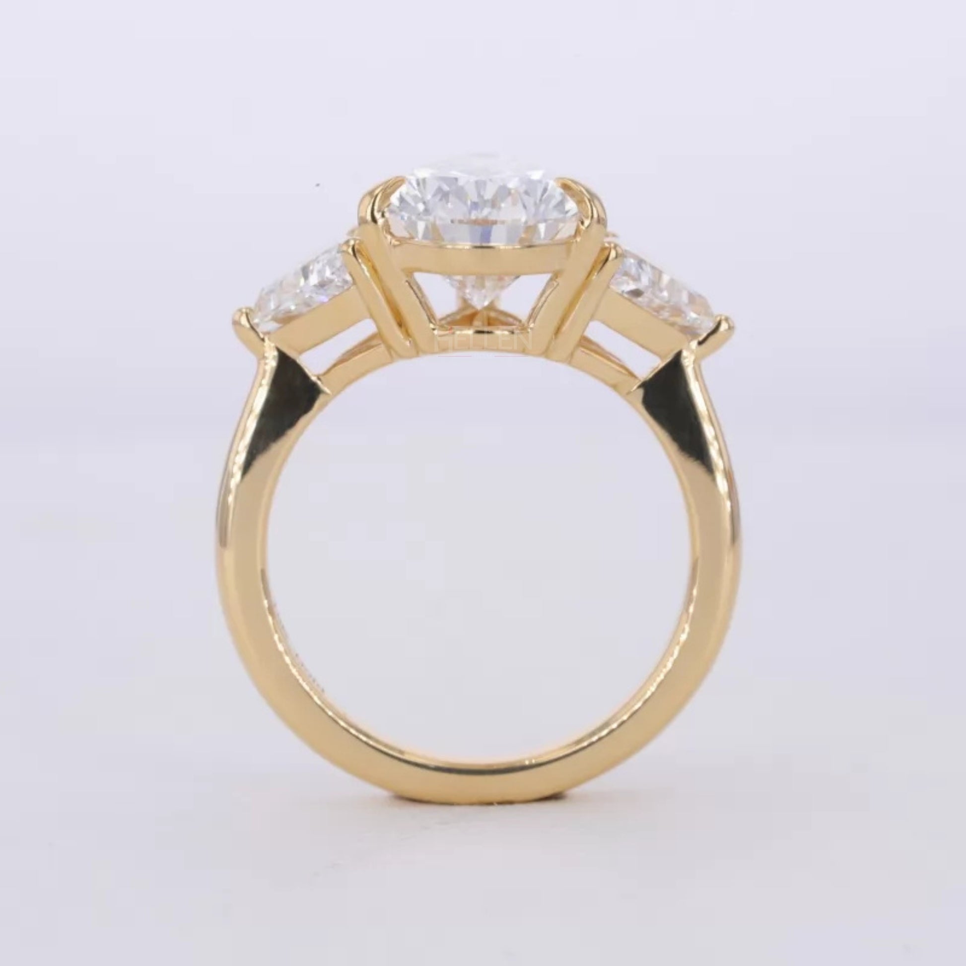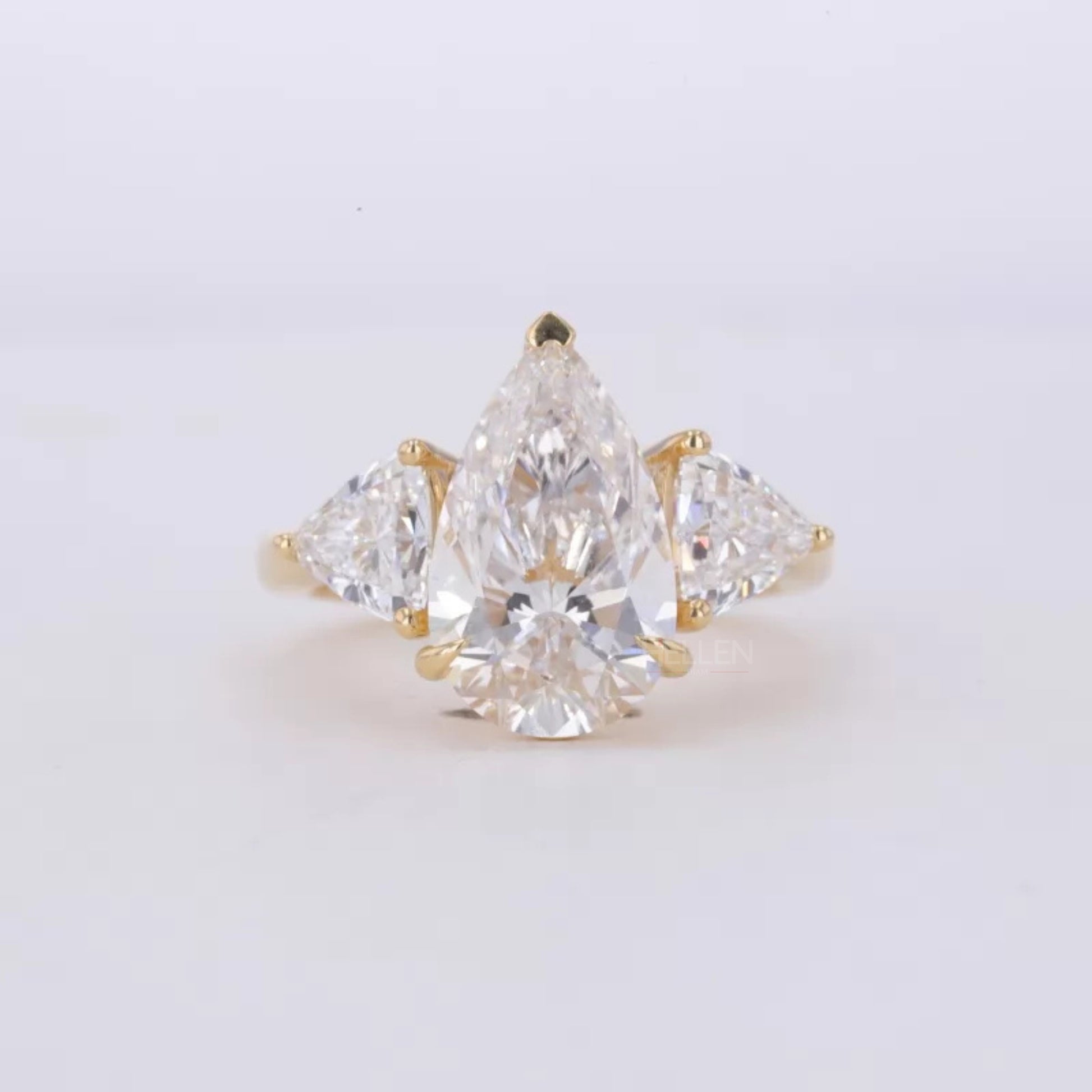 Three Stone Pear Cut Moissanite Ring Trillion Side Stone