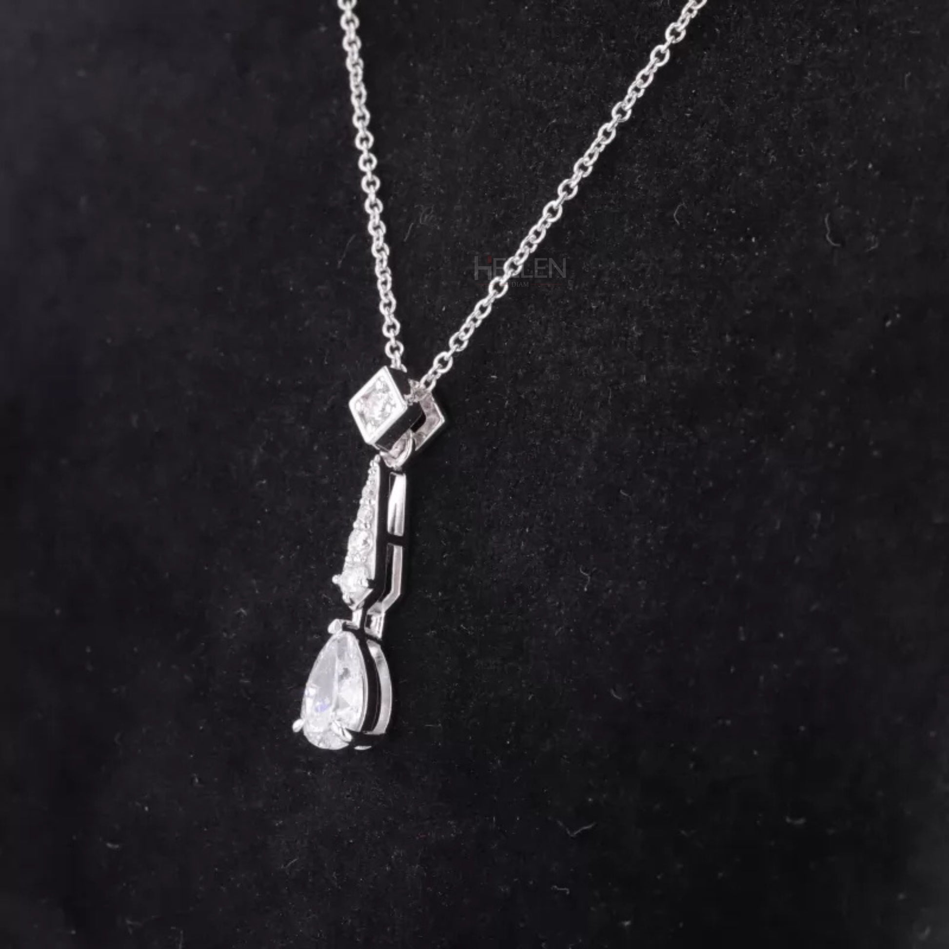 Water Drop Pear & Round Cut Moissanite Long Necklace